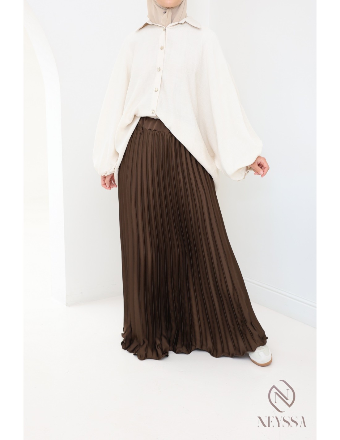 Looking for a long satin pleated skirt to complete your Muslim women's wardrobe?