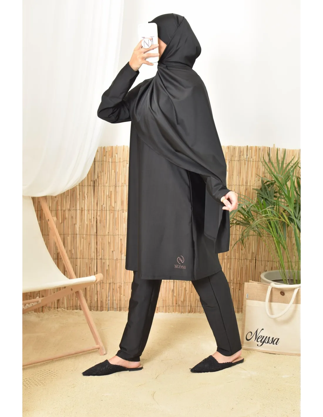 Long black burkini twil, tunic with pants and integrated hijab