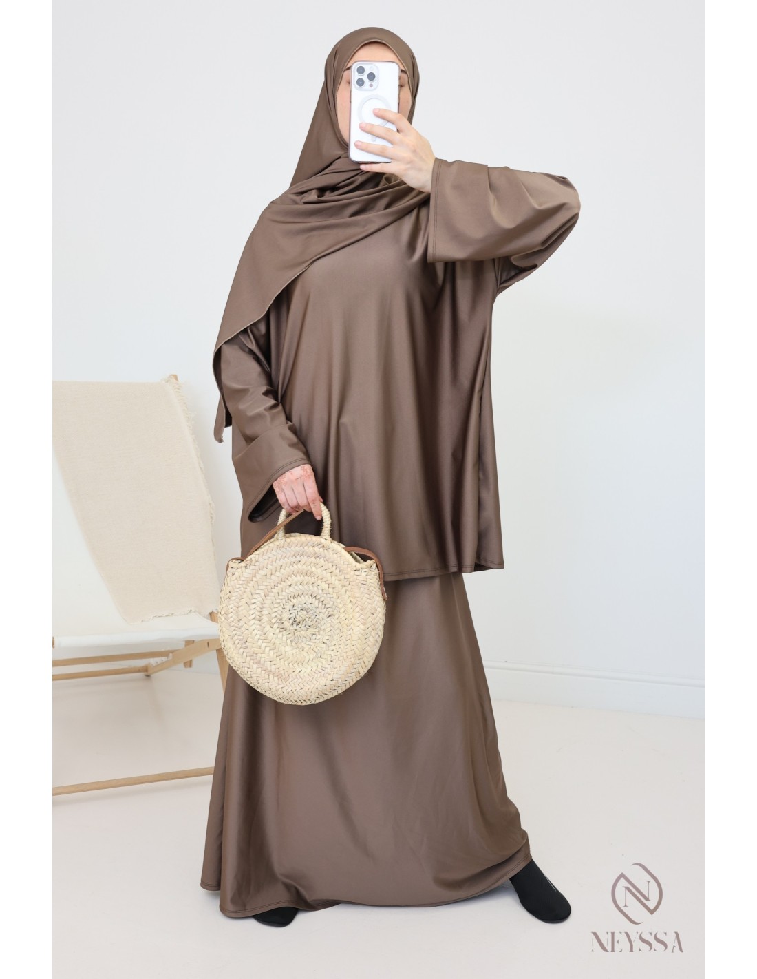 This long skirt burkini offers you complete coverage and optimal comfort without compromising your style: