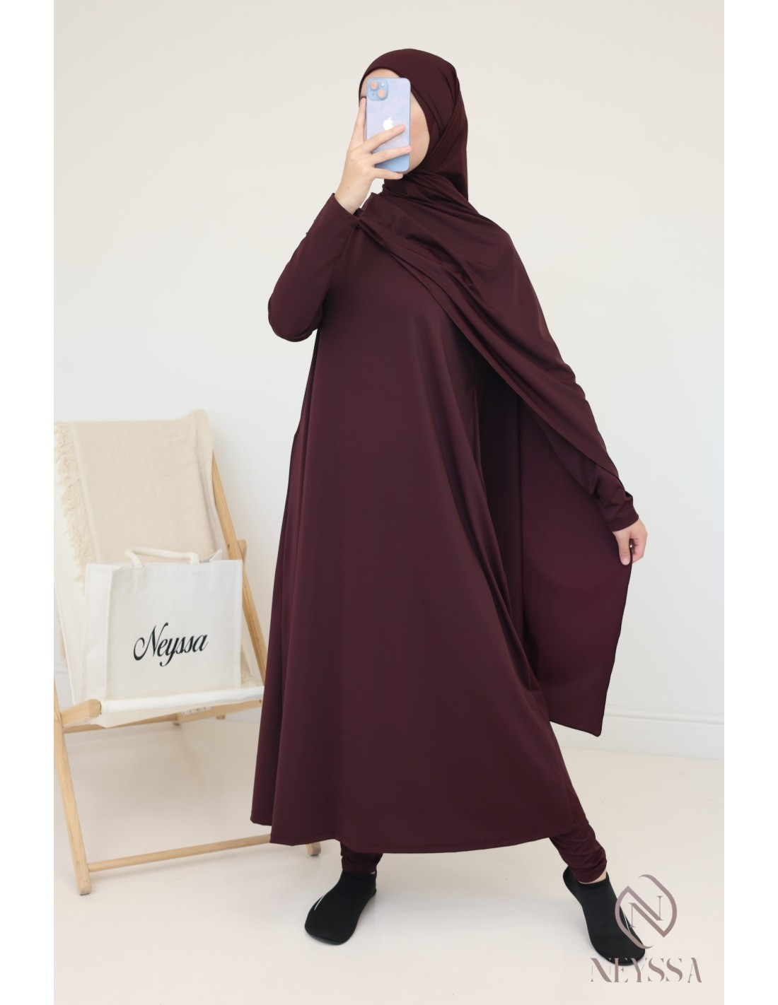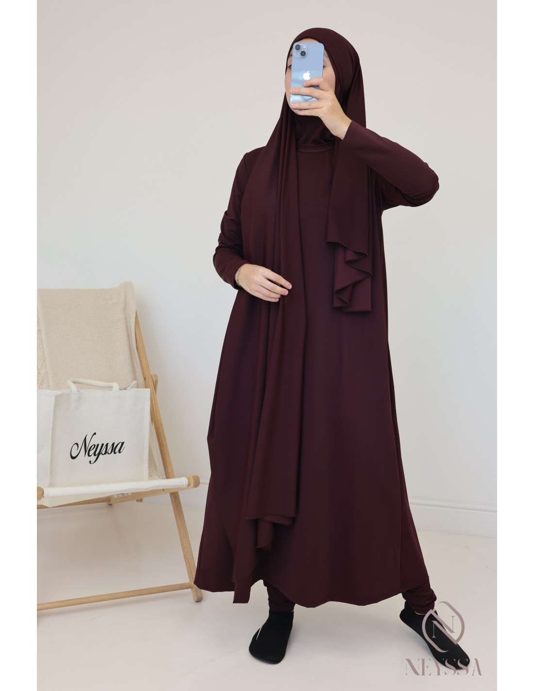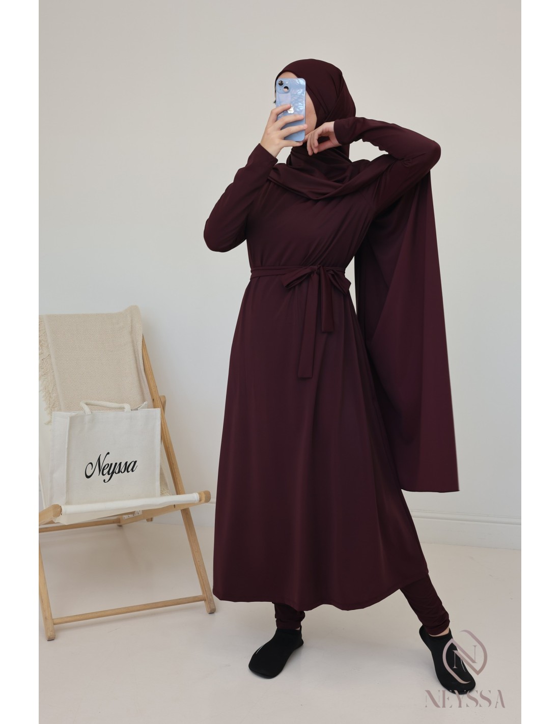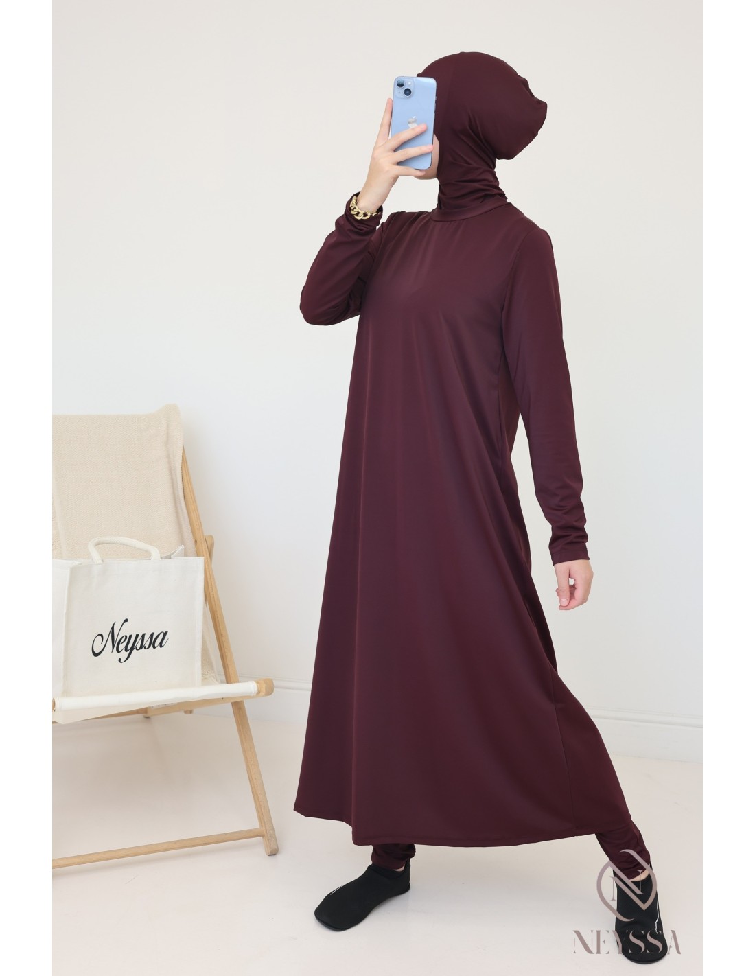Burkini long hijab slip-on Al Nakheel Burgundy