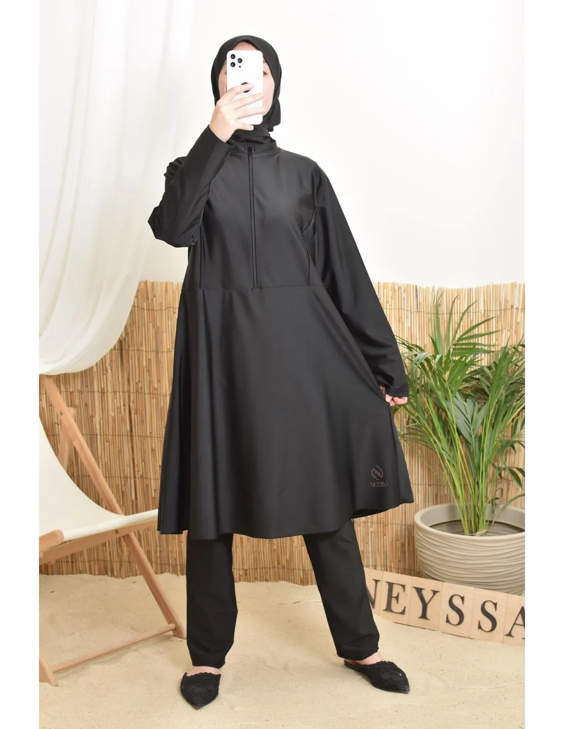 - Made by Neyssa: This top-of-the-range swim burkini is made in our workshops from quality fabric.