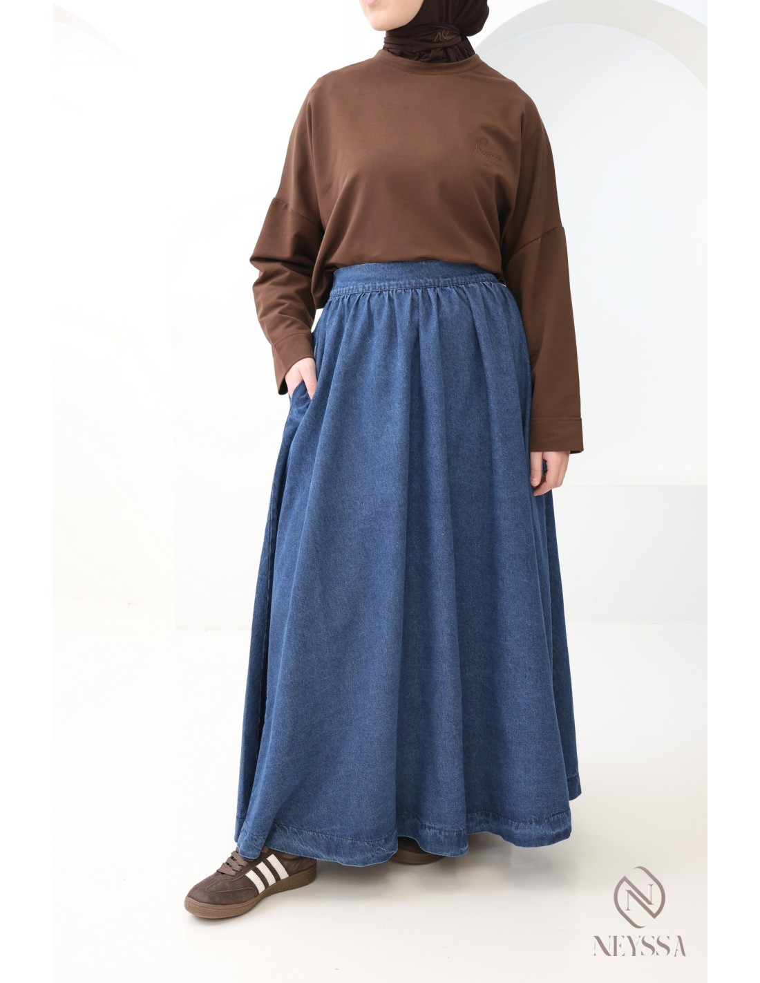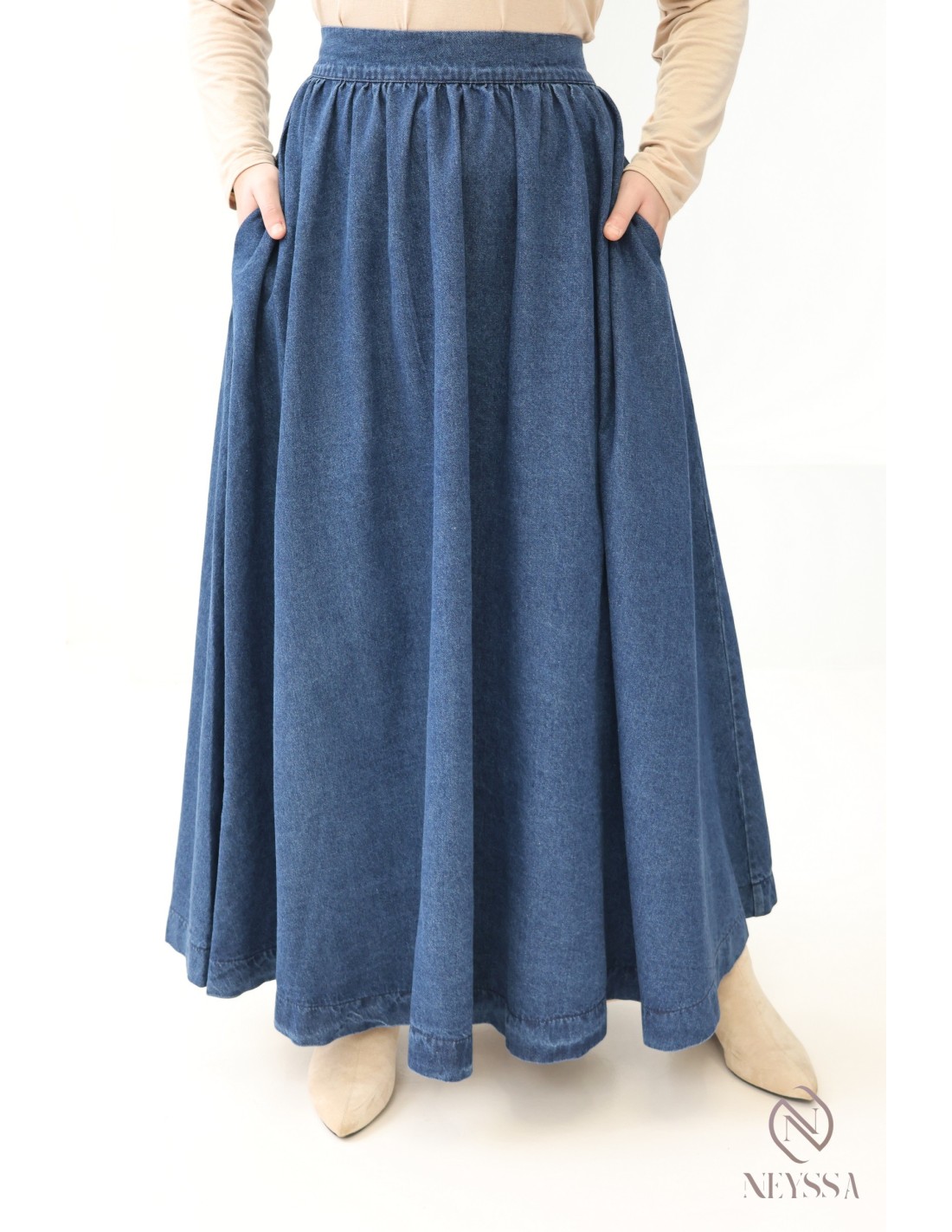 Choose this ultra-trendy long denim skirt for this summer from our special ready-to-wear collection for Muslim women.