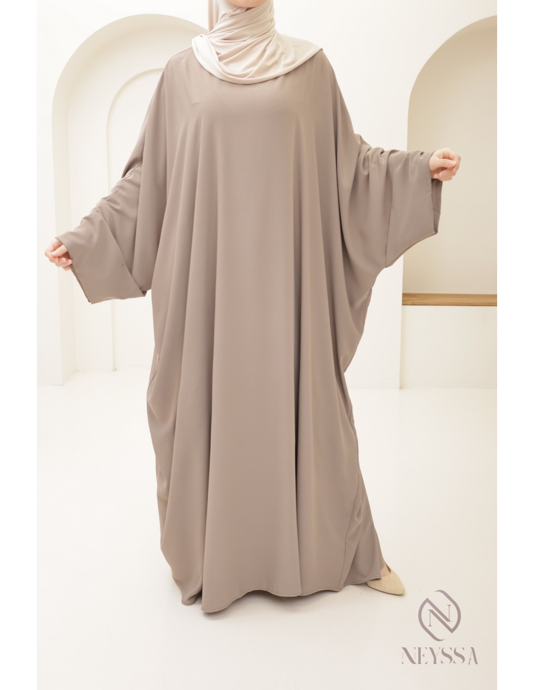 Immerse yourself in the ultimate comfort of this sumptuous flowing butterfly Abaya Saoudienne, with an elegant drape that extends to the ample cuffs embellished with snaps.