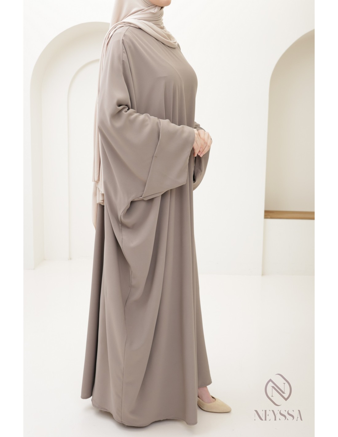 Inspired by the traditional Saudi flared cut, this Abaya will be your everyday ally. It goes perfectly with a maxi hijab or Jilbab cape.