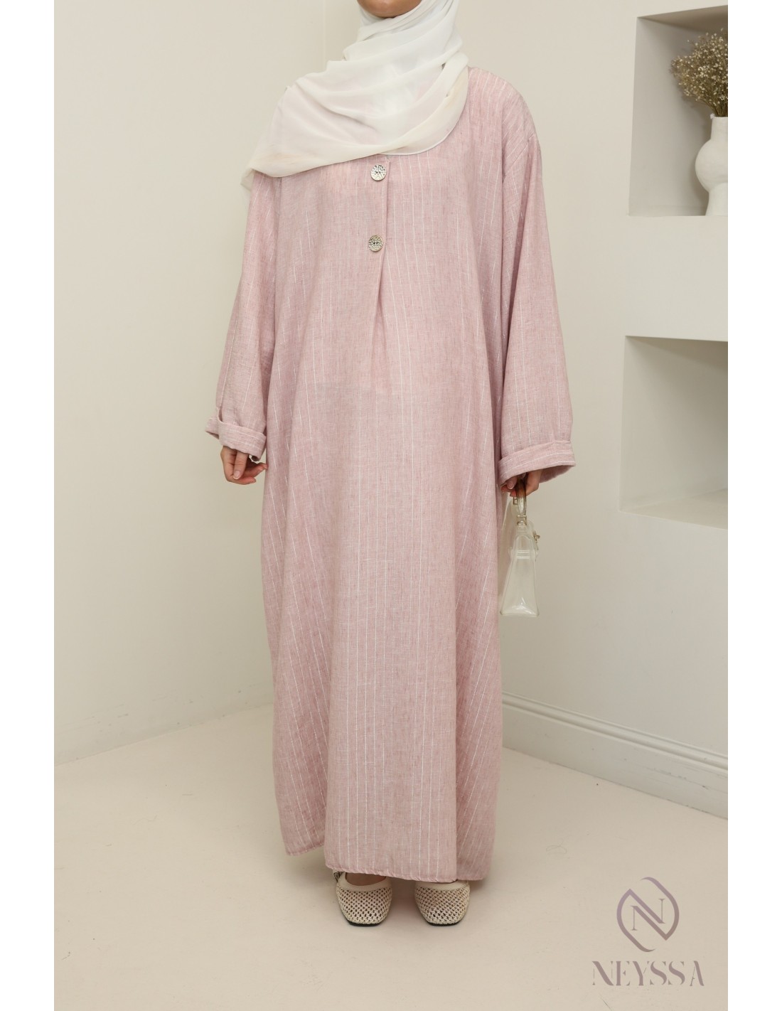 Loose-fitting women's long dress with stripes and cuffed sleeves