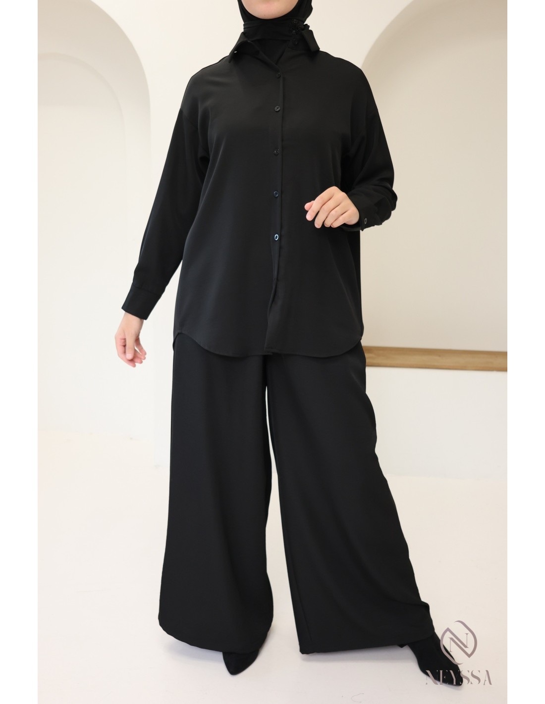 Loose-fitting mid-length button-down shirt for hijabi women: a must-have