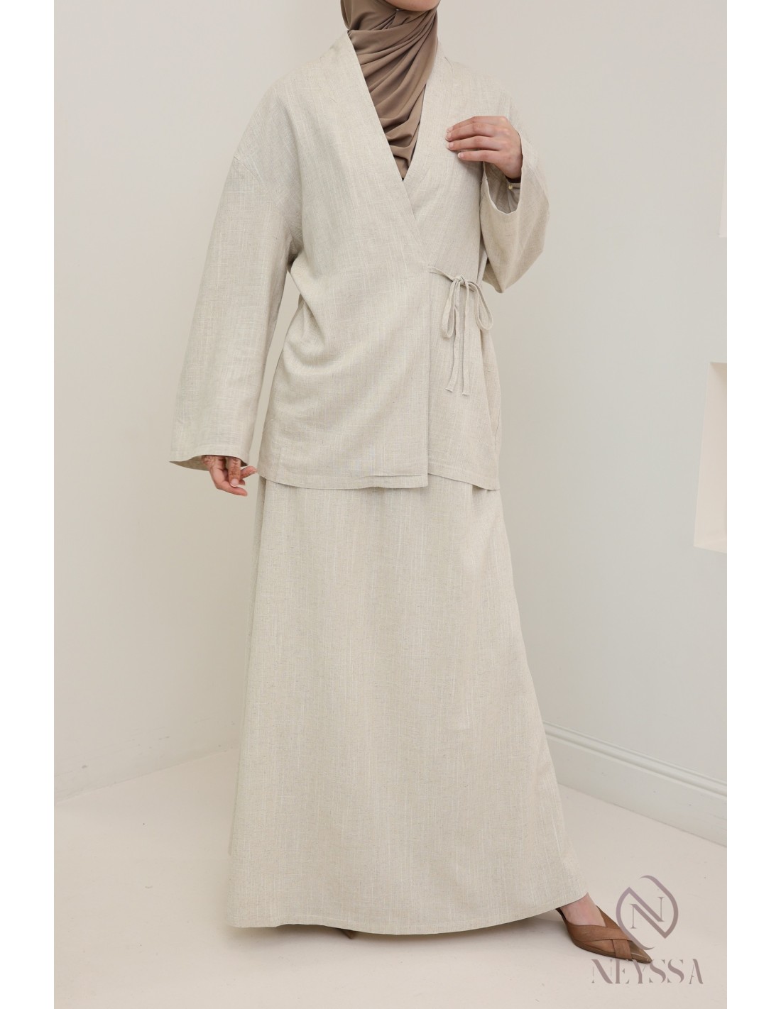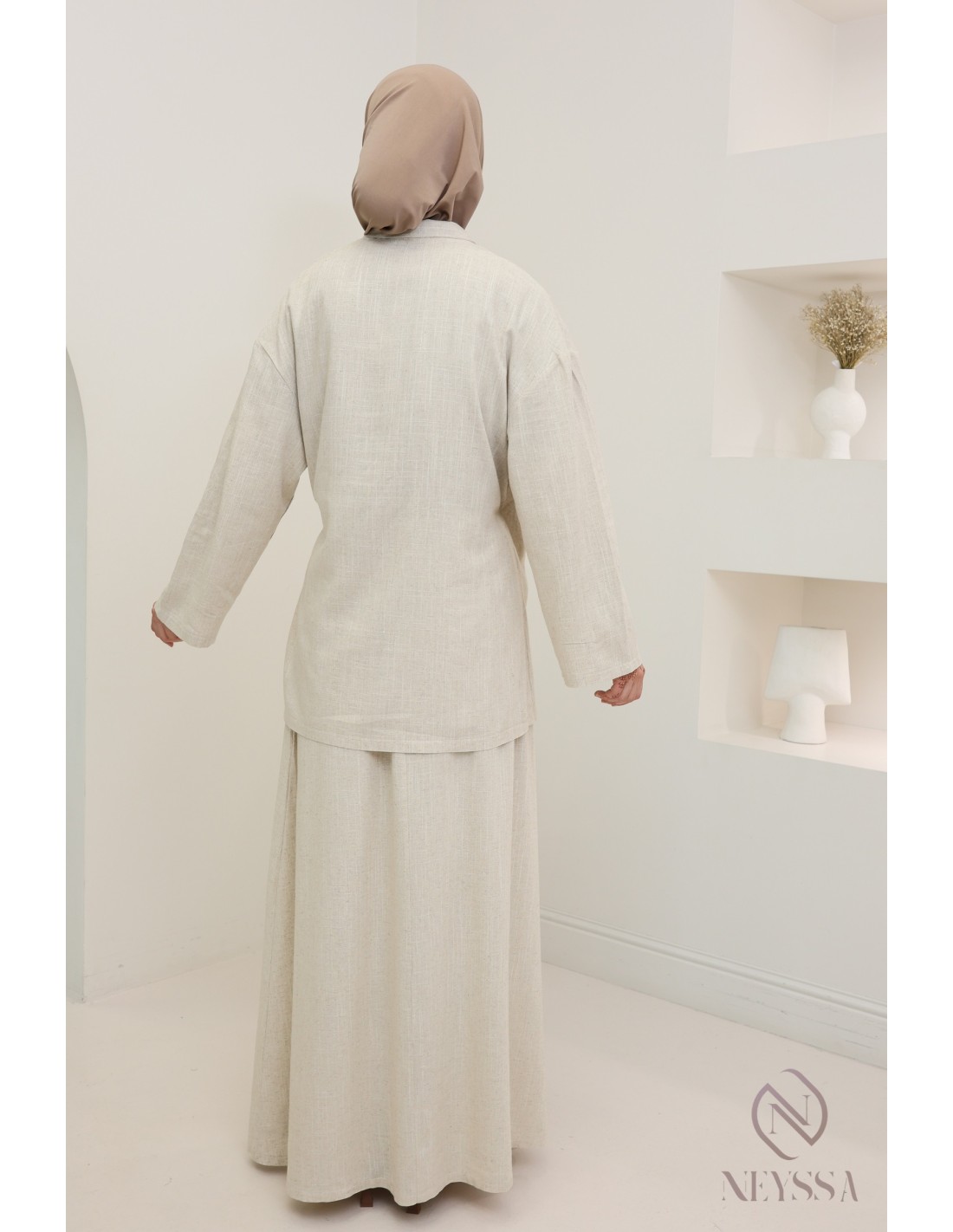 Is your wardrobe full of summer skirts and palazzo pants, but you're missing some pretty modest tops to complete your outfits? At Neyssa, we offer trendy modest ready-to-wear clothing where you'll find nothing but gems, including this beautiful linen-effect top.*