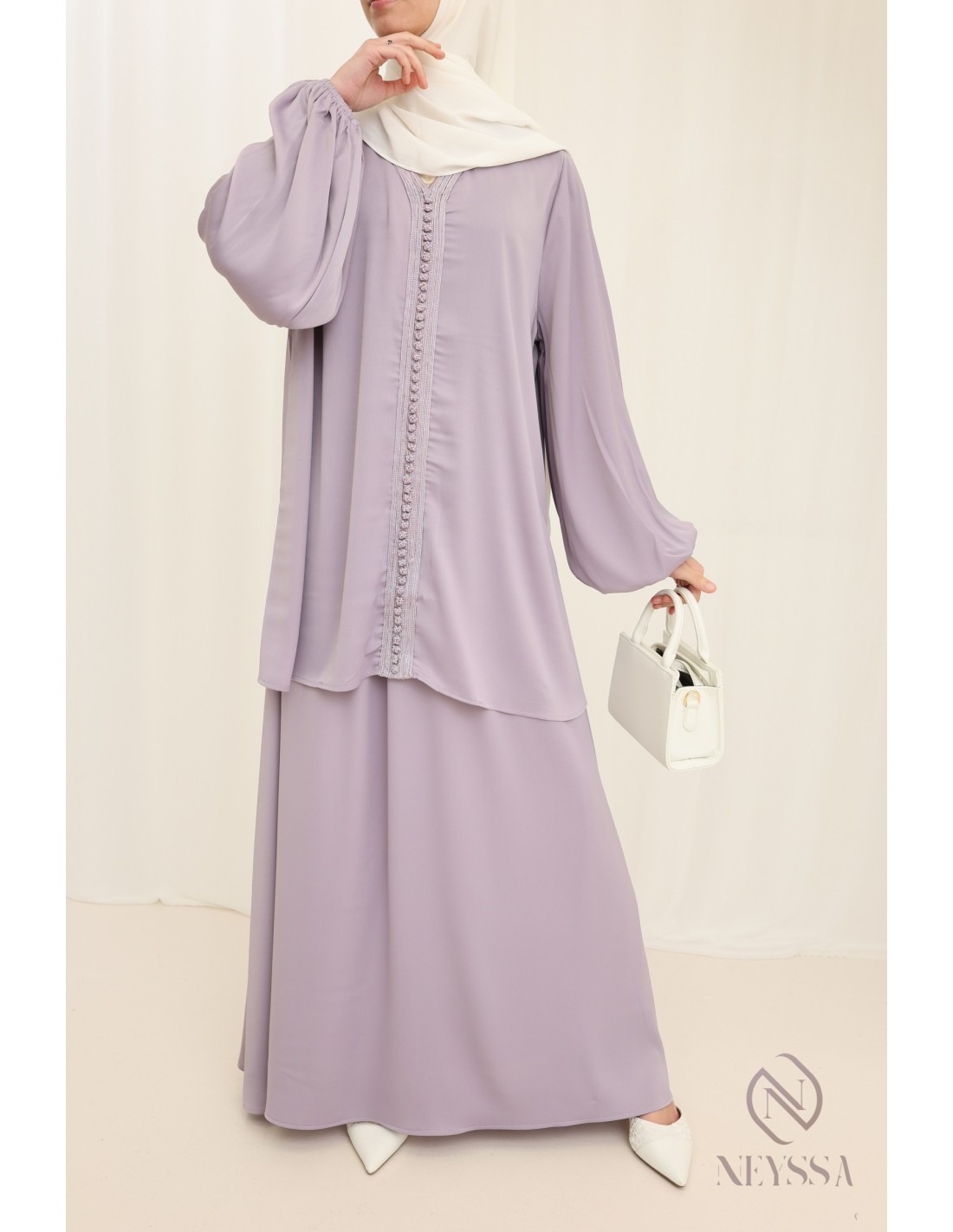 Women's puff-sleeve tunic skirt set with sfifa Lilac
