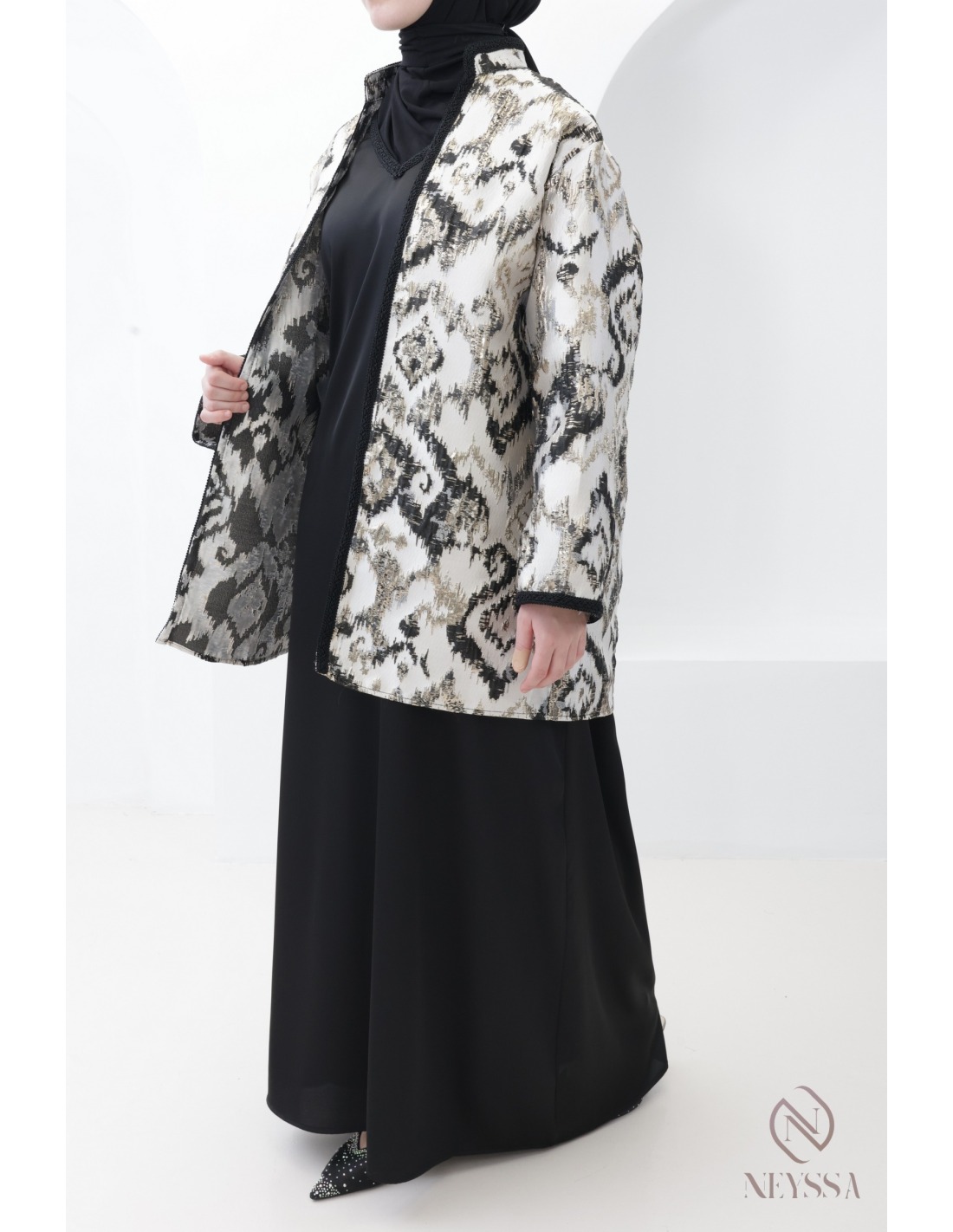 This caftan abaya brocade caftan dress set is ideal for special events such as weddings, parties, or cultural celebrations. Pair it with jewelry and babouche shoes for a glamorous look