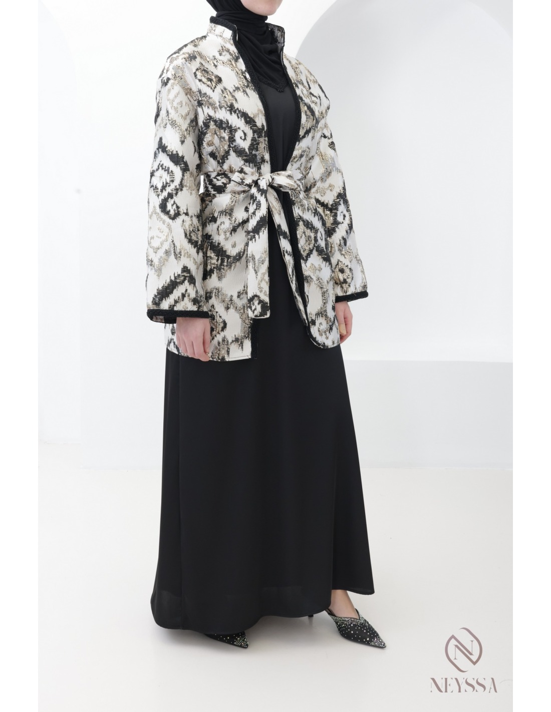 Looking for a refined and elegant outfit for Eid or other special occasions? Discover this stunning kimono caftan set with a veiled women's dress, combining tradition and modernity for a chic and sophisticated look.