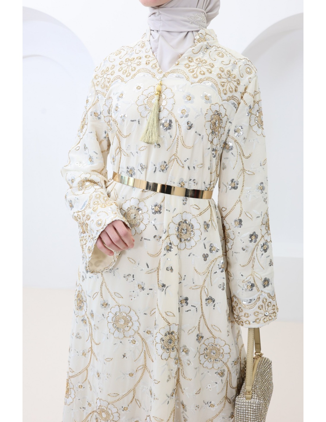 You will really appreciate the style of this pretty Abaya modern oriental caftan perfect for parties ! It is refined and very feminine.