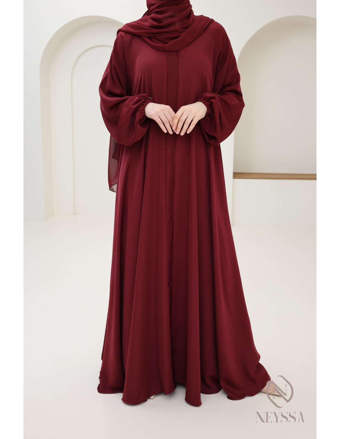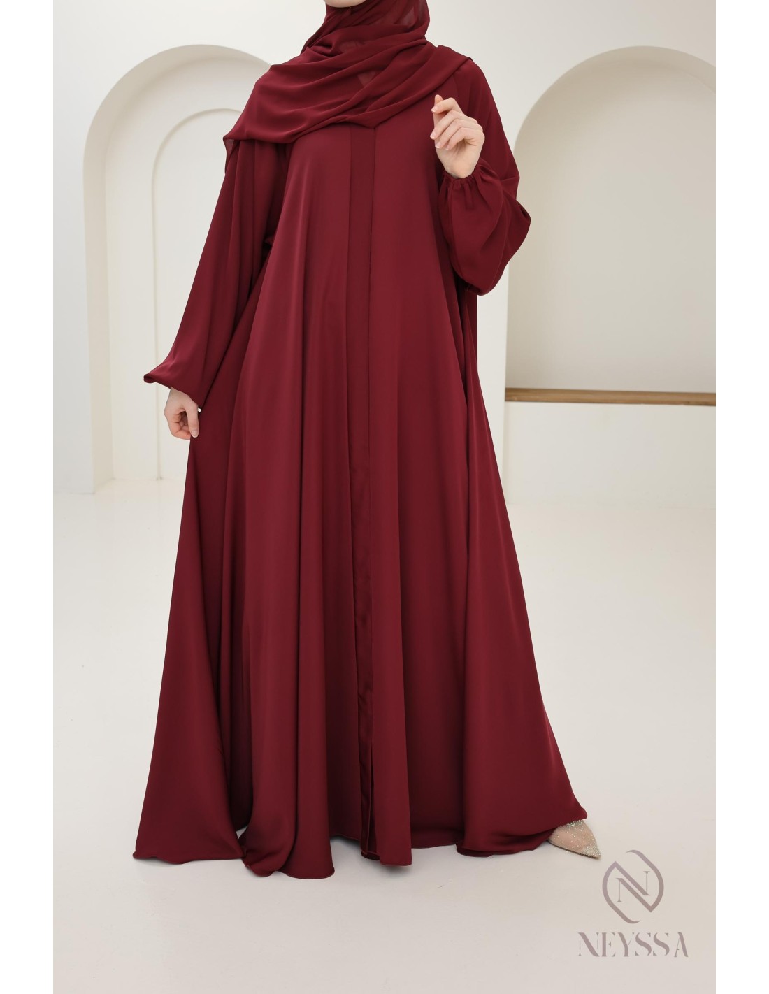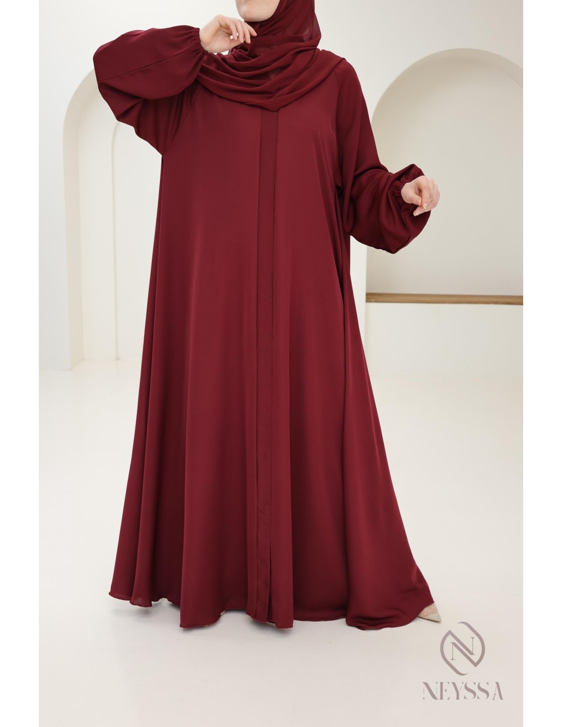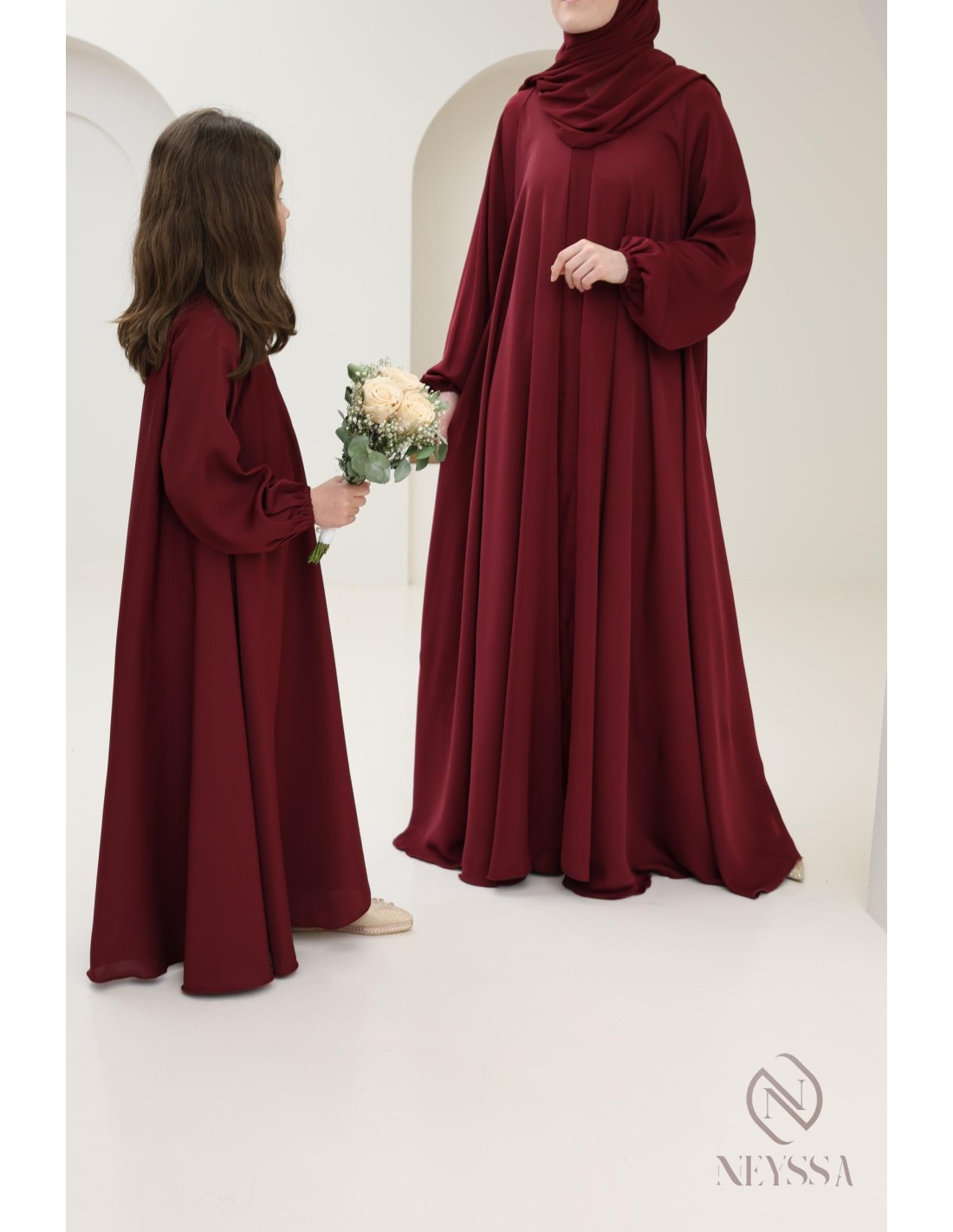 Abaya Dubaï flared cut Bordeaux : mother or daughter Ramadan 2025