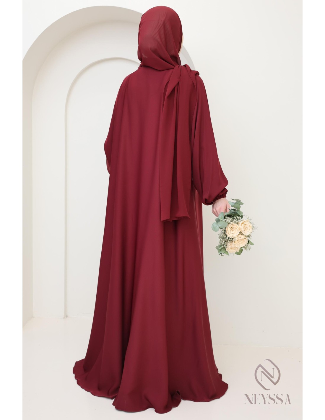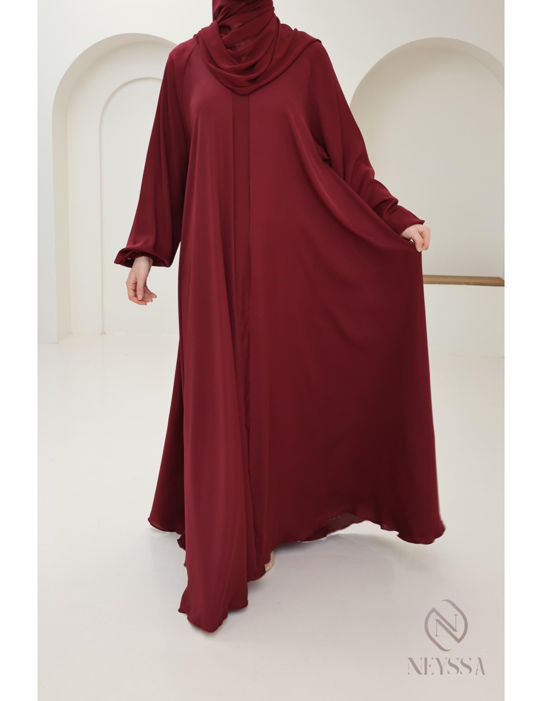 Abaya Dubai flared cut Bordeaux confection neyssa, trend 2025