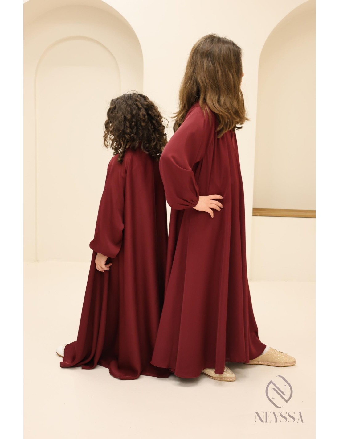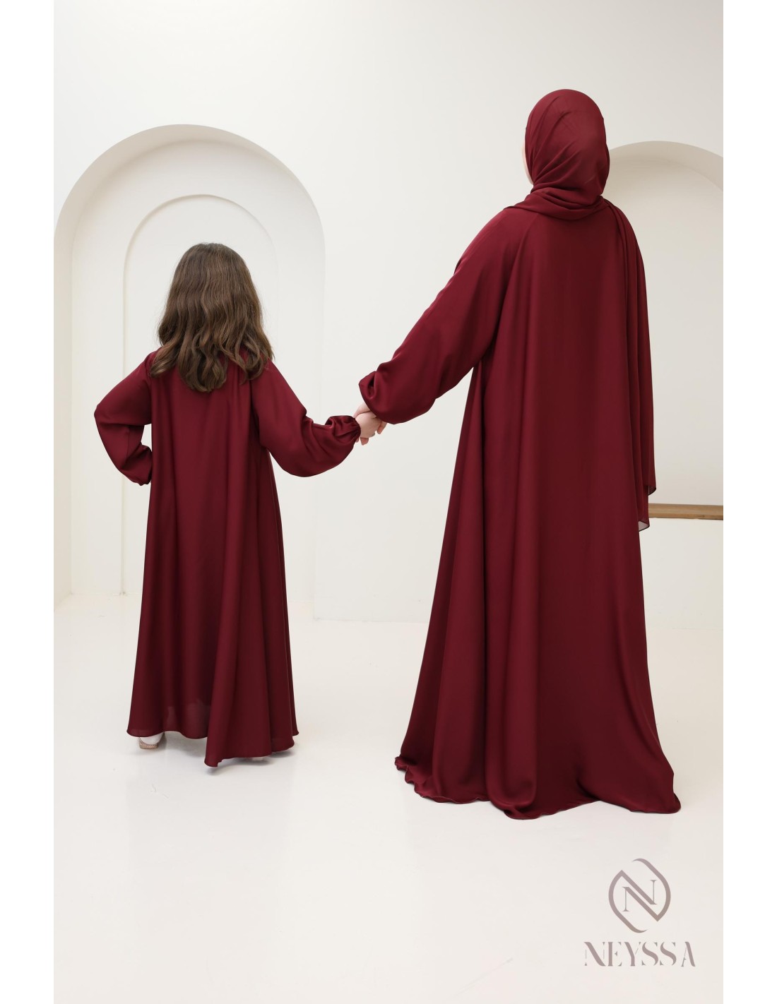 Abaya Dubai Bordeaux mother or daughter : The dress to wear as a duo to create a sensation on Eid day.