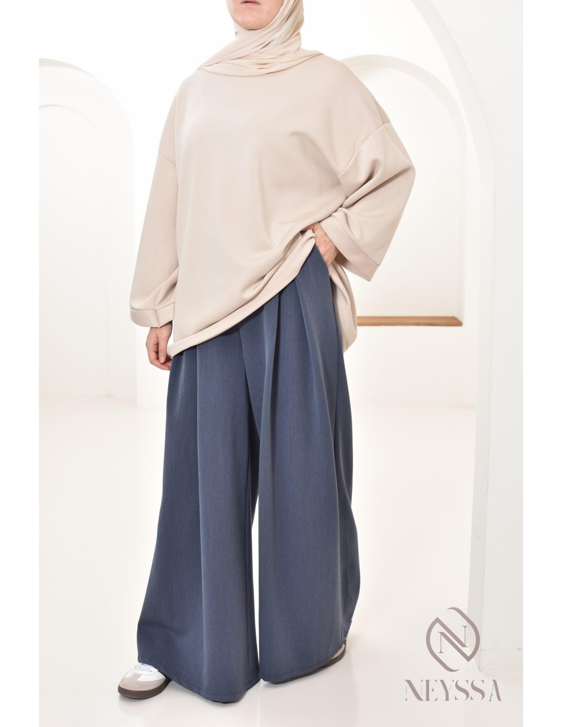 wide palazzo with tailored darts, modest hijabi fashion
