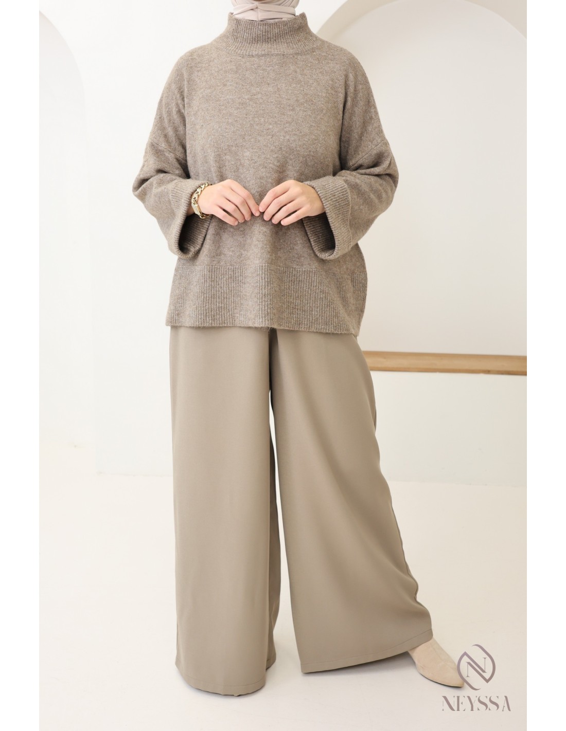 Fall for these wide-legged palazzo-style culottes and skirt suits for hijabi women, made from a lightweight, slightly satiny fabric.