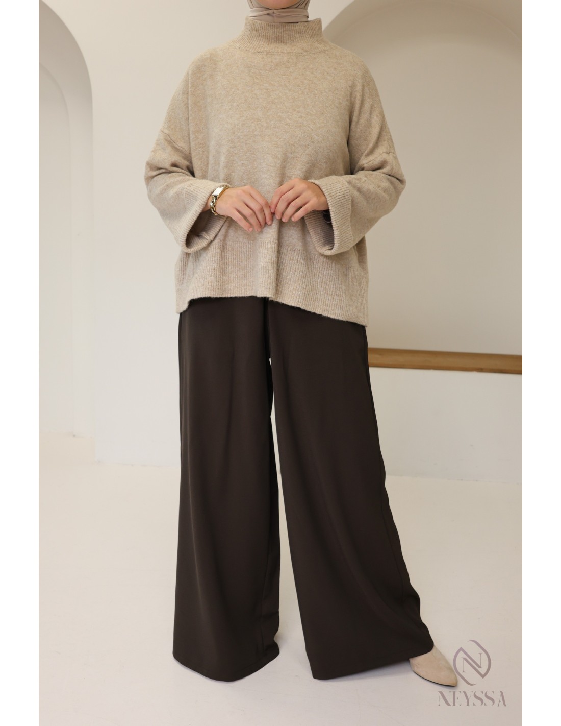 • Chic cocooning look: pair your palazzo pants with an oversized knit sweater and a pair of cozy slippers.