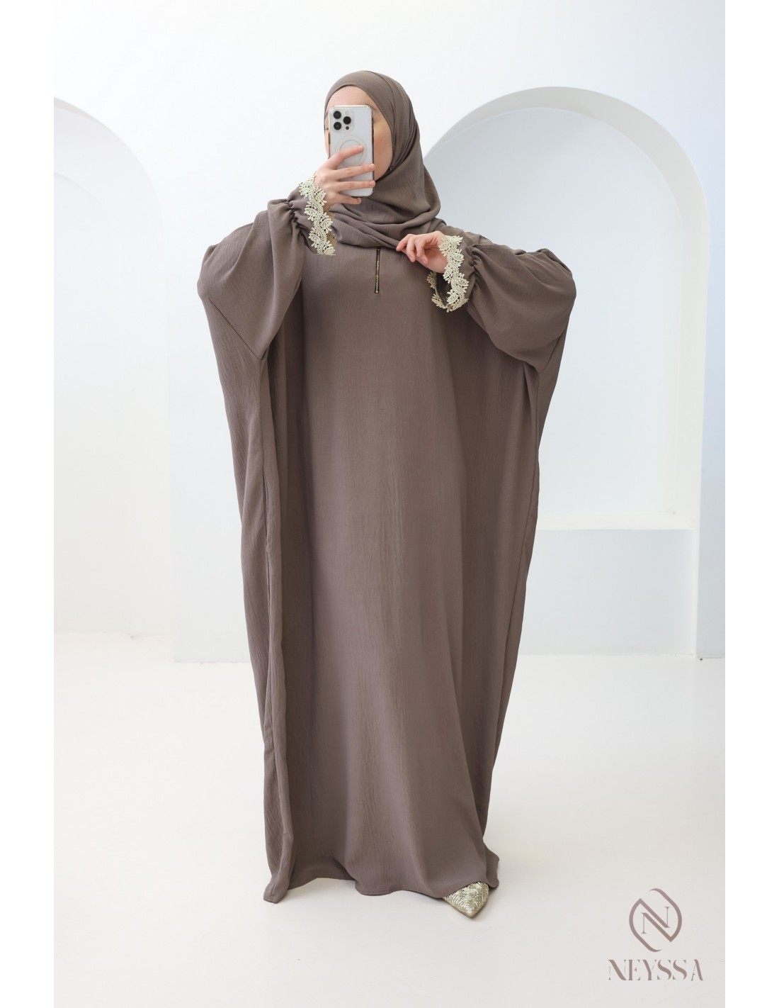 This long dress for Muslim women is sure to please, thanks to its lace embroidery: