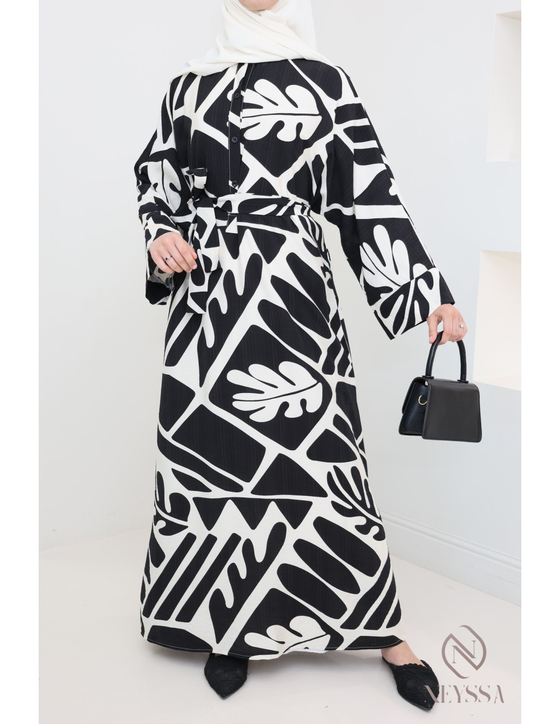 Abaya black dress with abstract motifs for veiled women