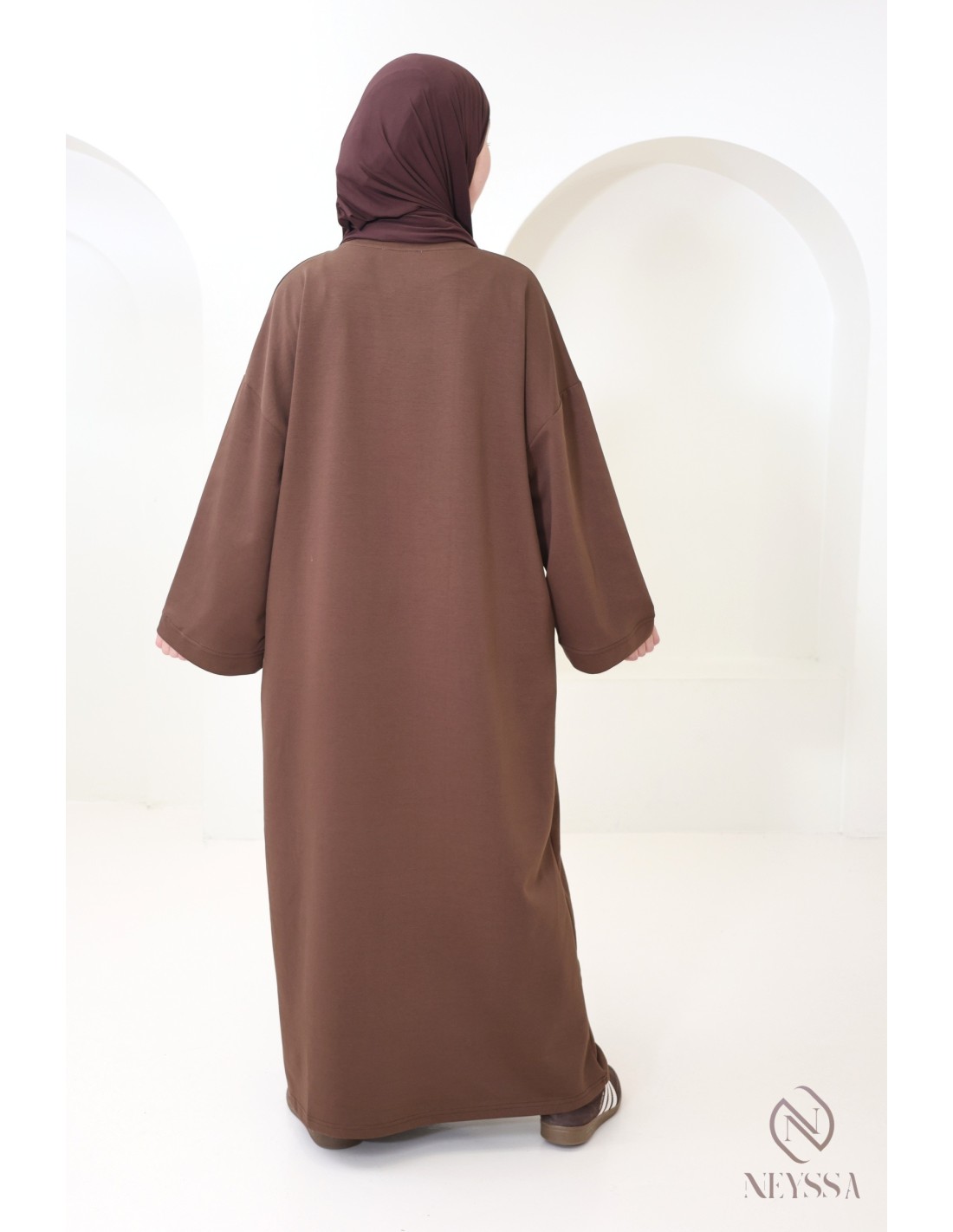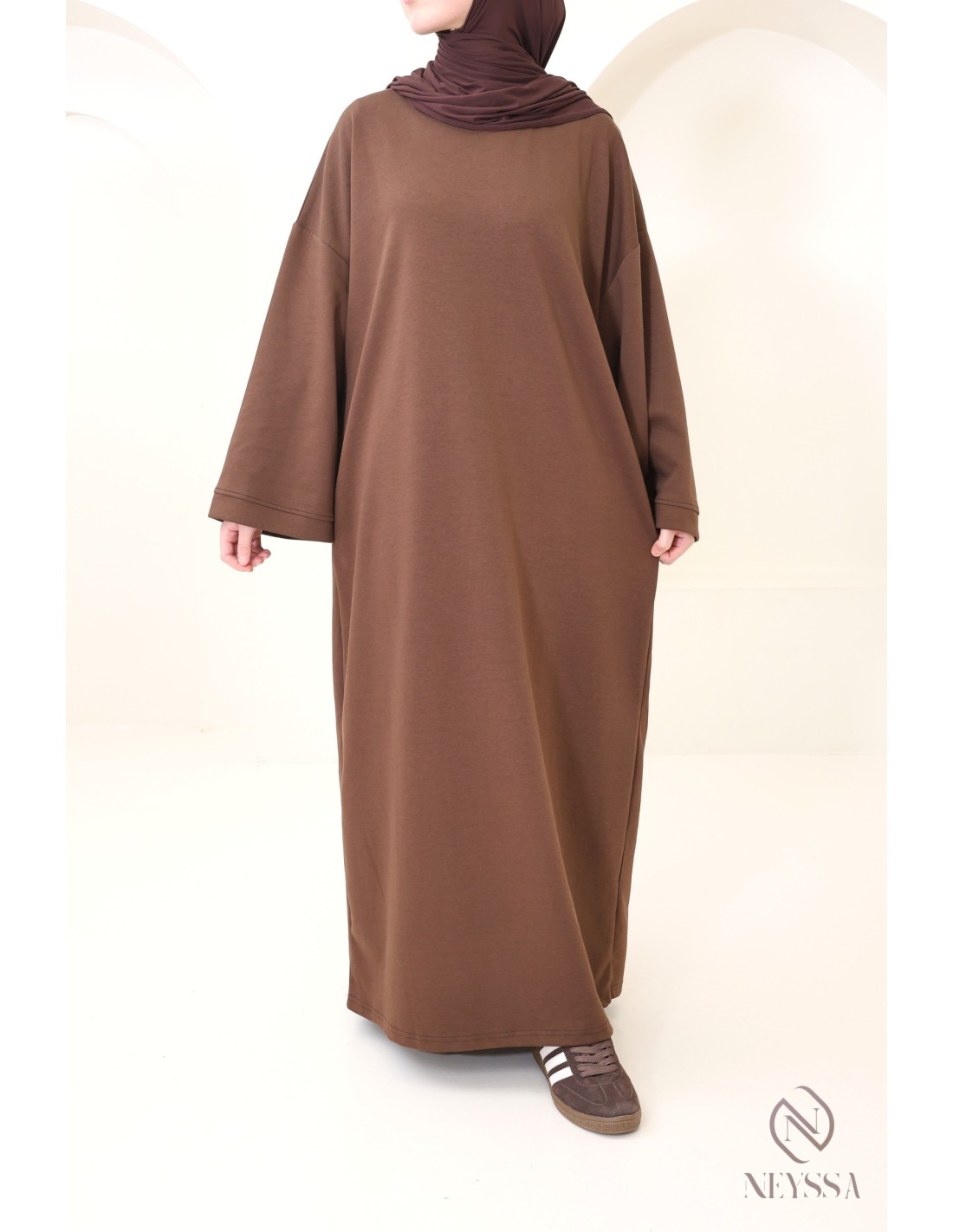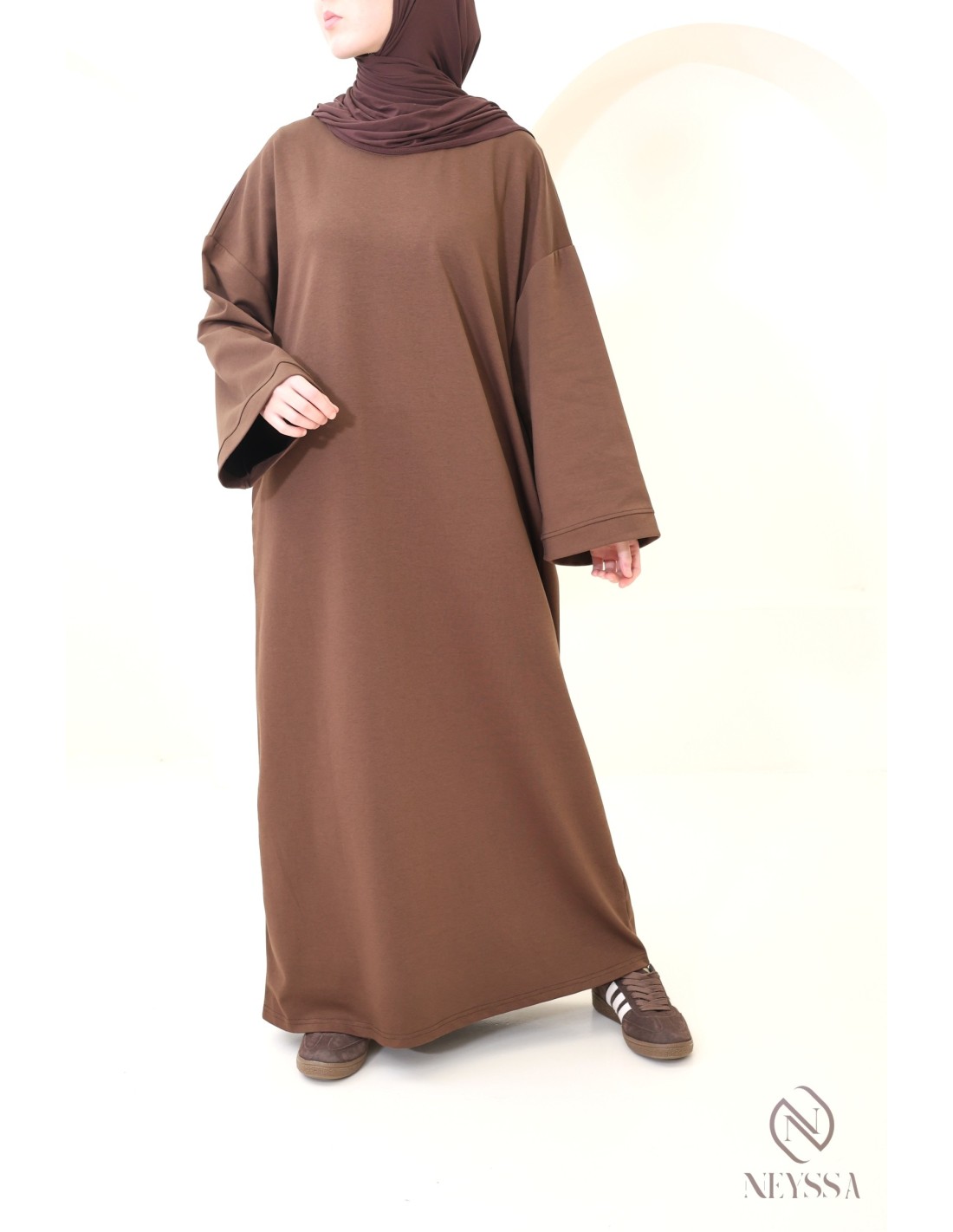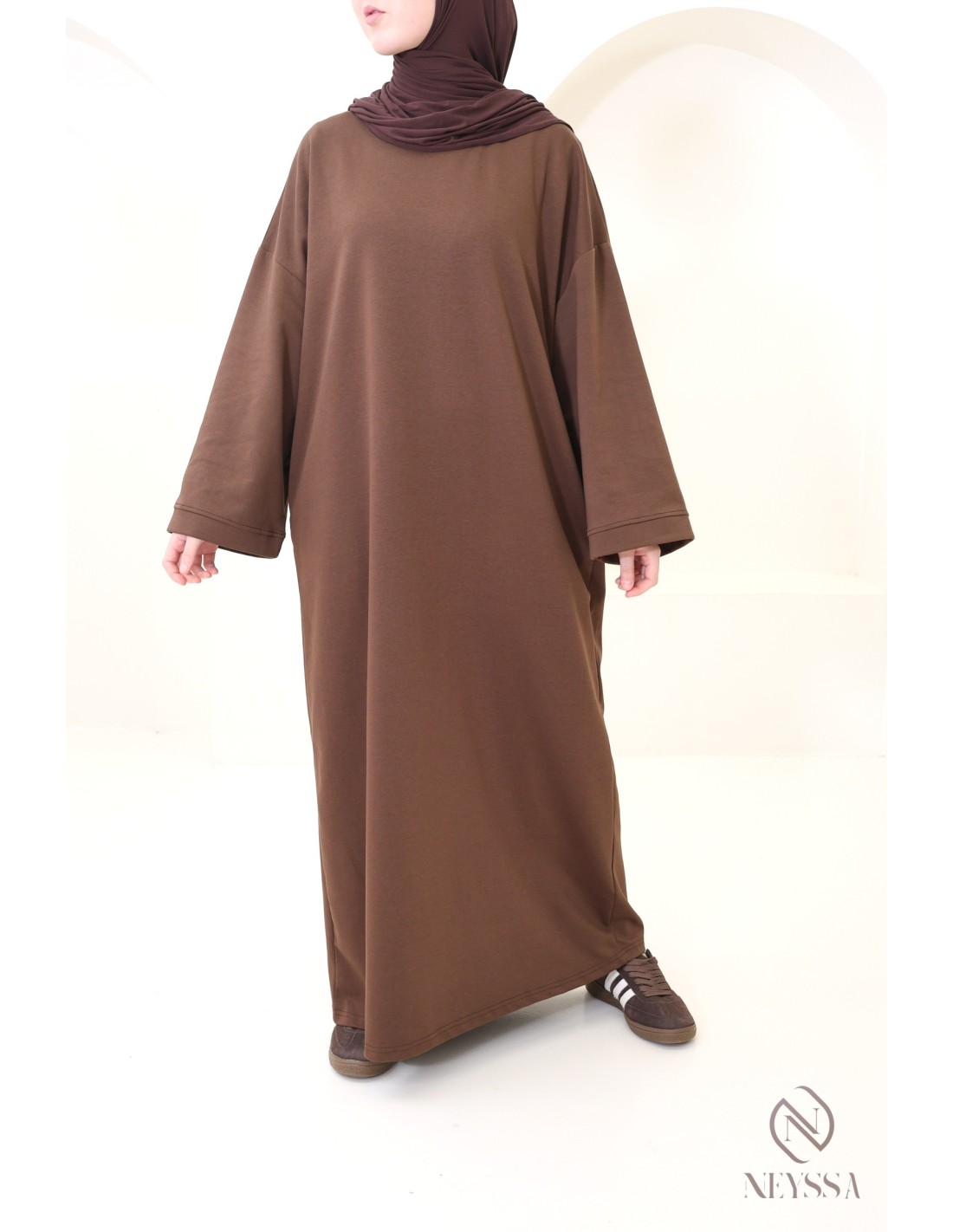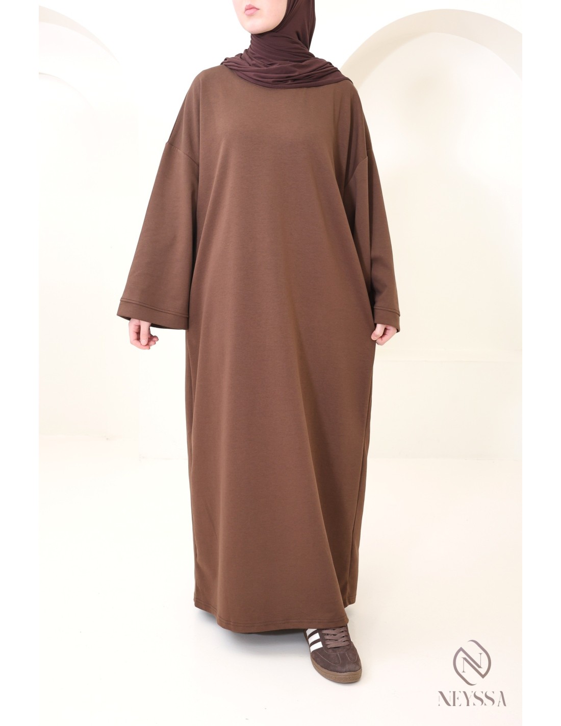 Here is a beautiful long dress for the season, both modern and comfortable. It is the essential piece to wear on cool days. Designed to meet the needs of warmth, style, and modesty, this dress is ideal for modern veiled women.