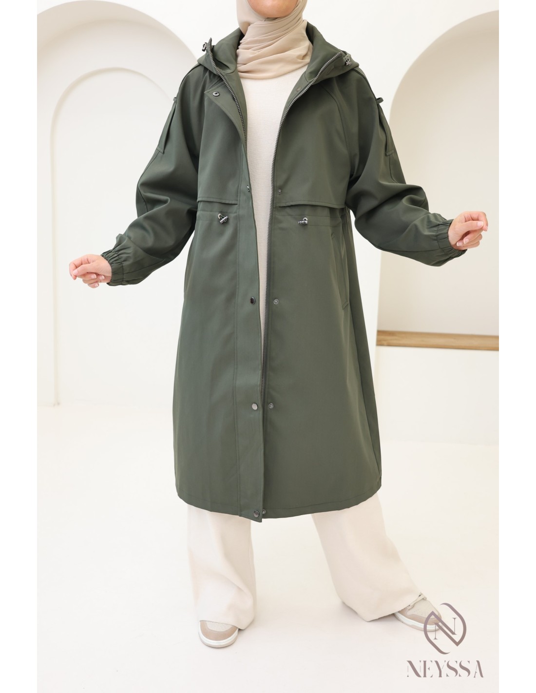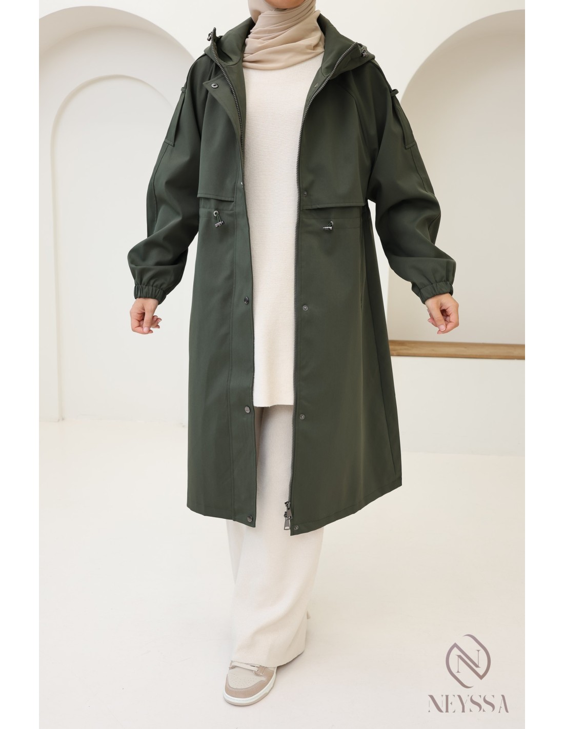 Combine comfort and elegance with this long jacket, designed for women looking for a modest and refined style.