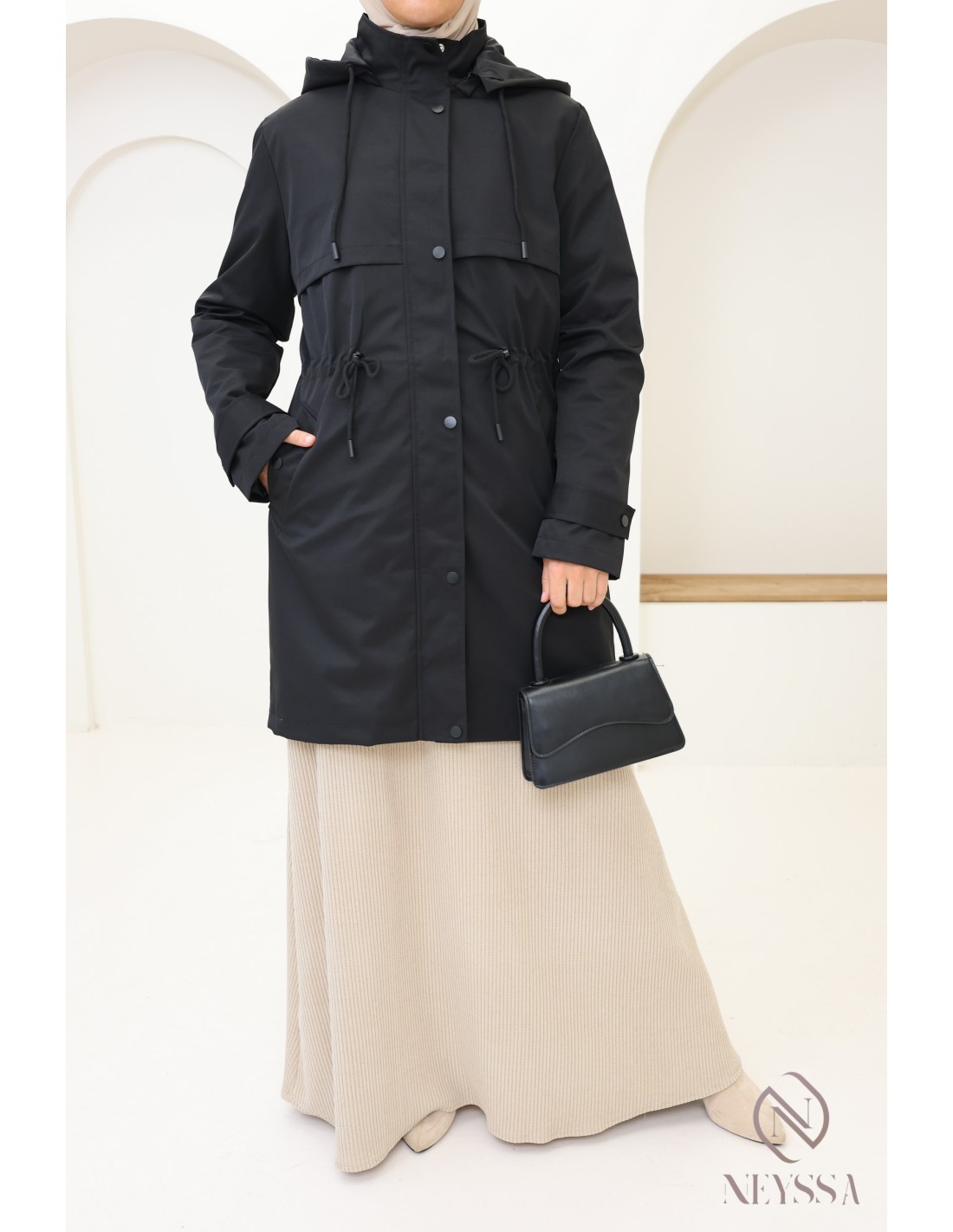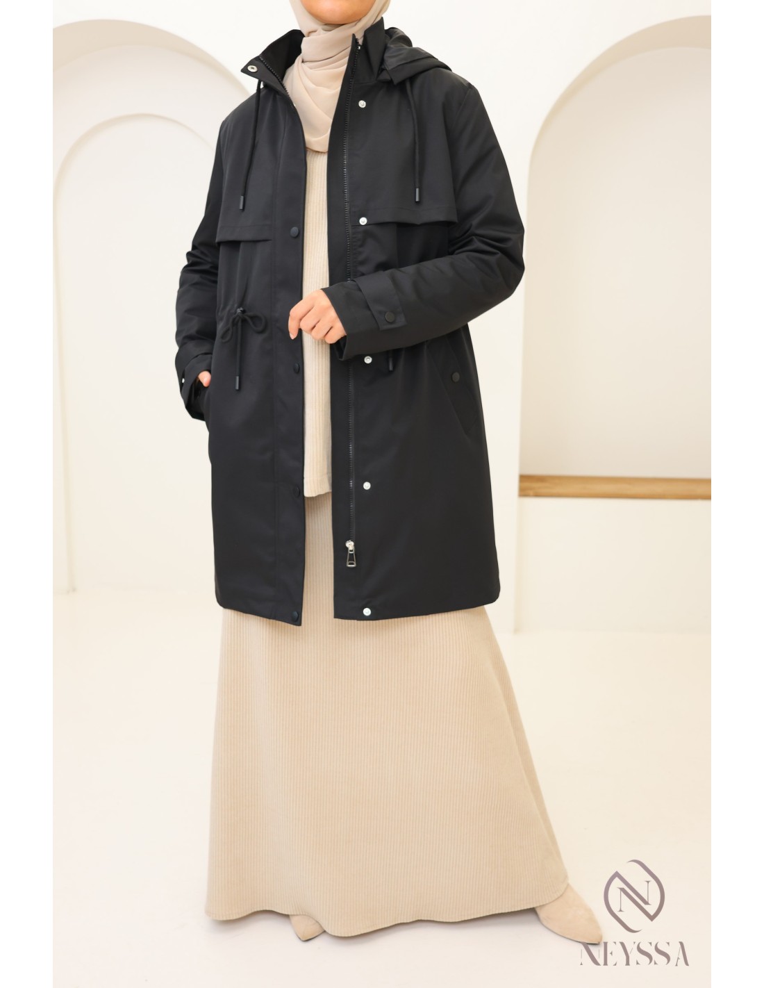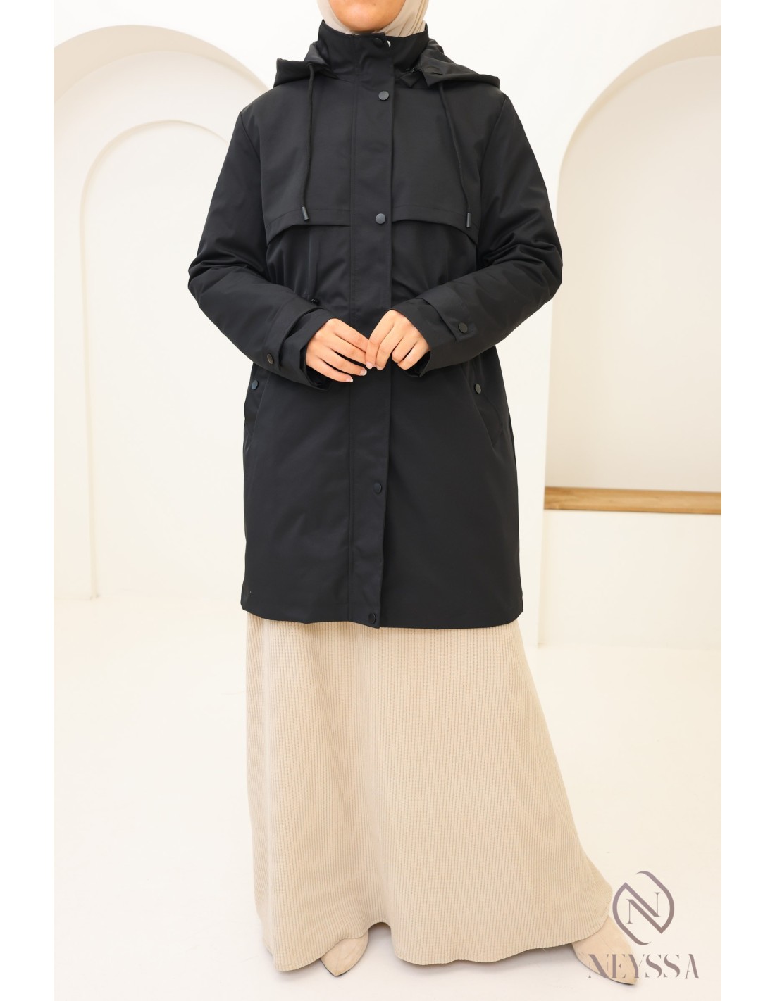 Looking for a trendy and practical mid-length parka for rainy days? Discover our selection designed to combine fashion and functionality in ready-to-wear clothing for veiled women.