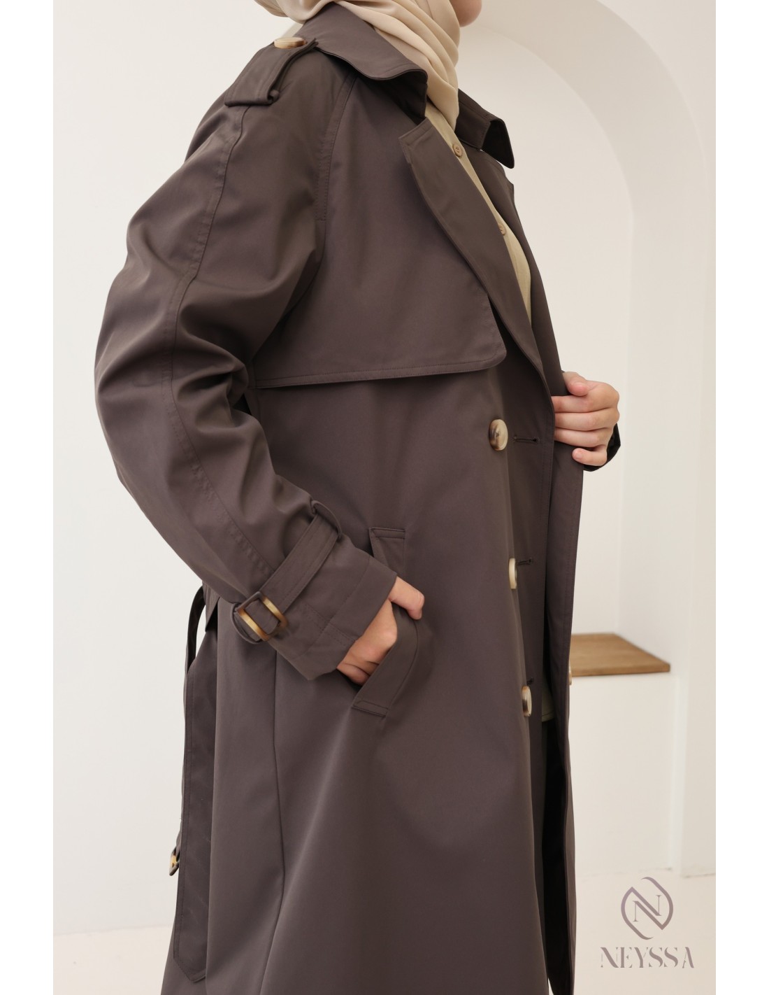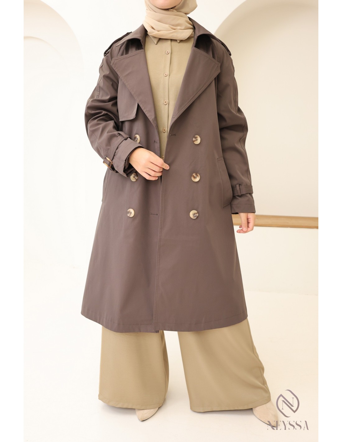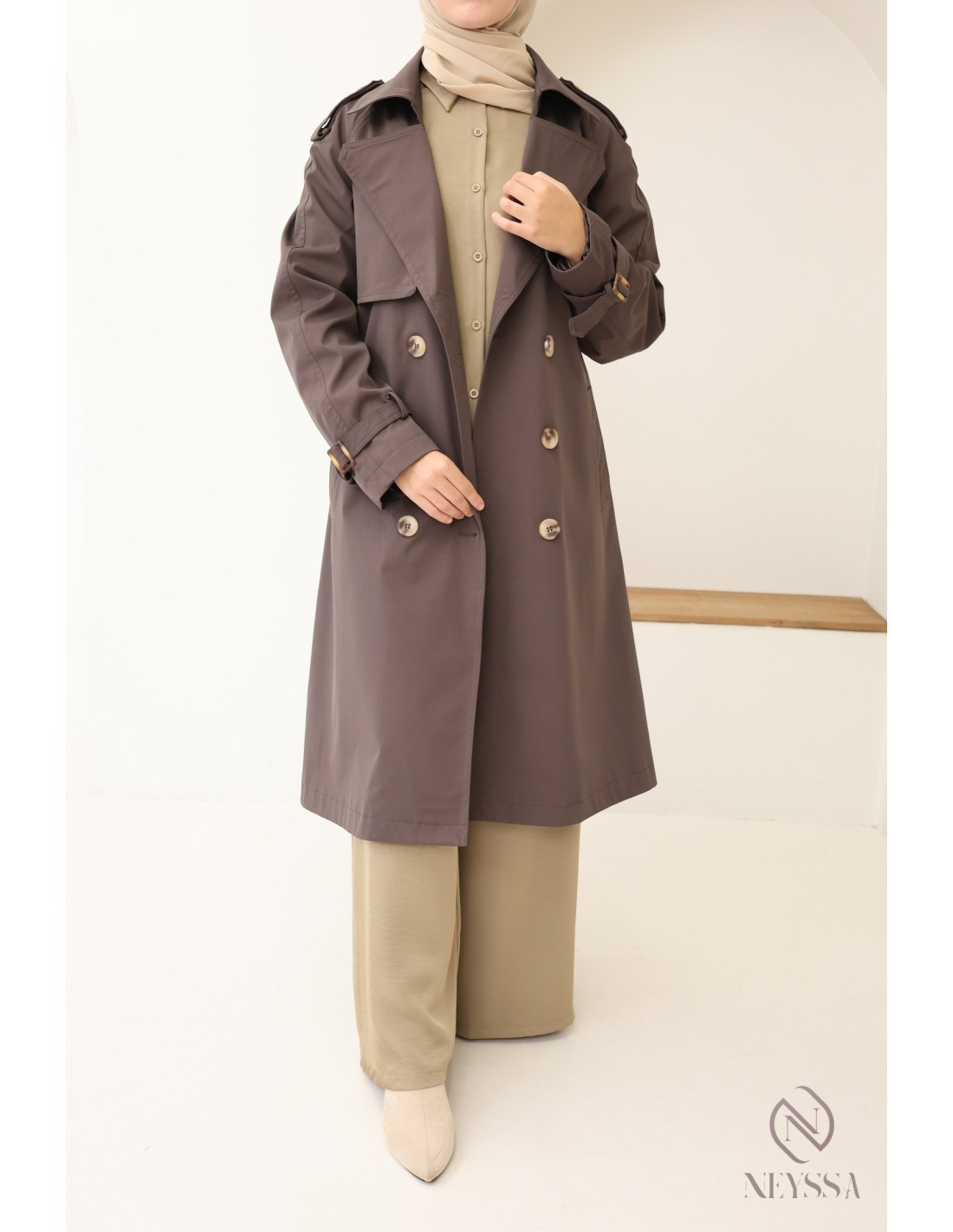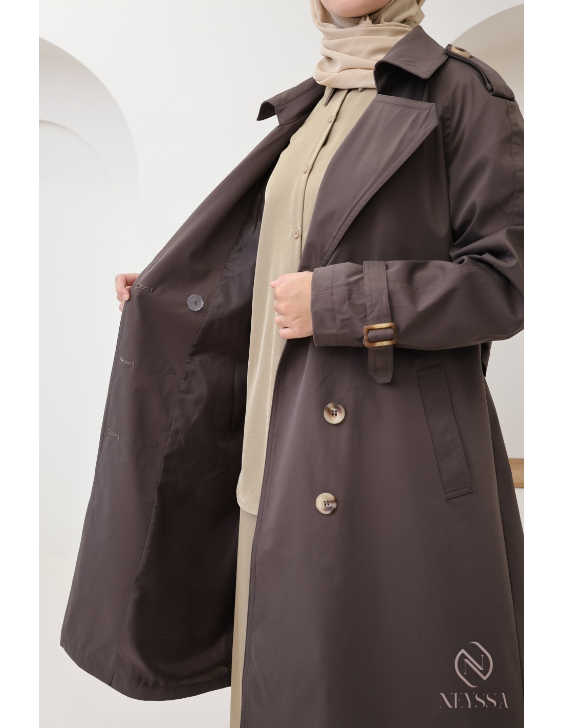 Looking for a coat that is both chic and practical to enhance your everyday looks? Discover our long brown trench coat, a must-have item in our ready-to-wear collection for the modern, modest woman.