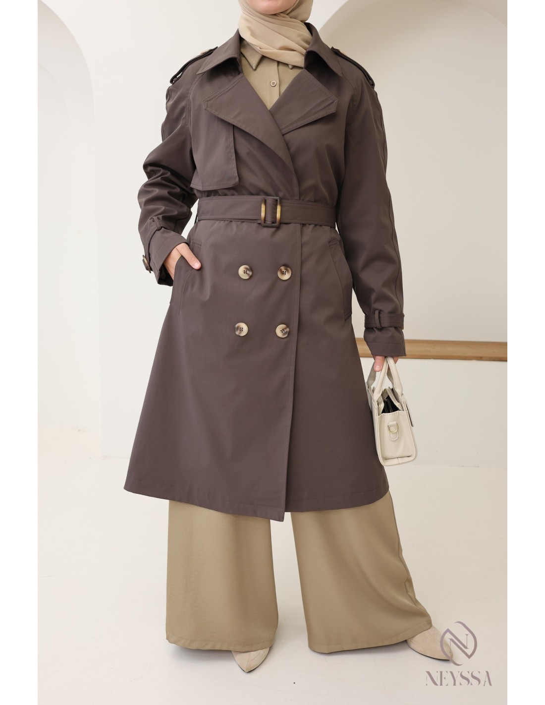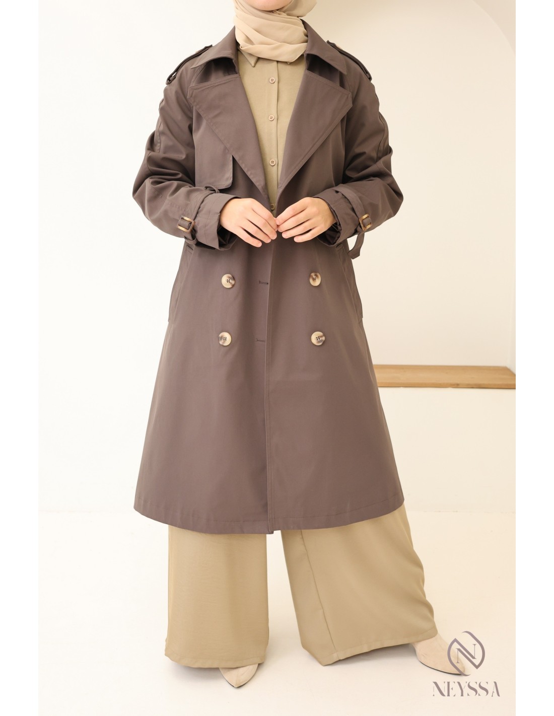 This hijabi women's trench coat is designed to combine elegance and practicality, thanks to its meticulous finishes: