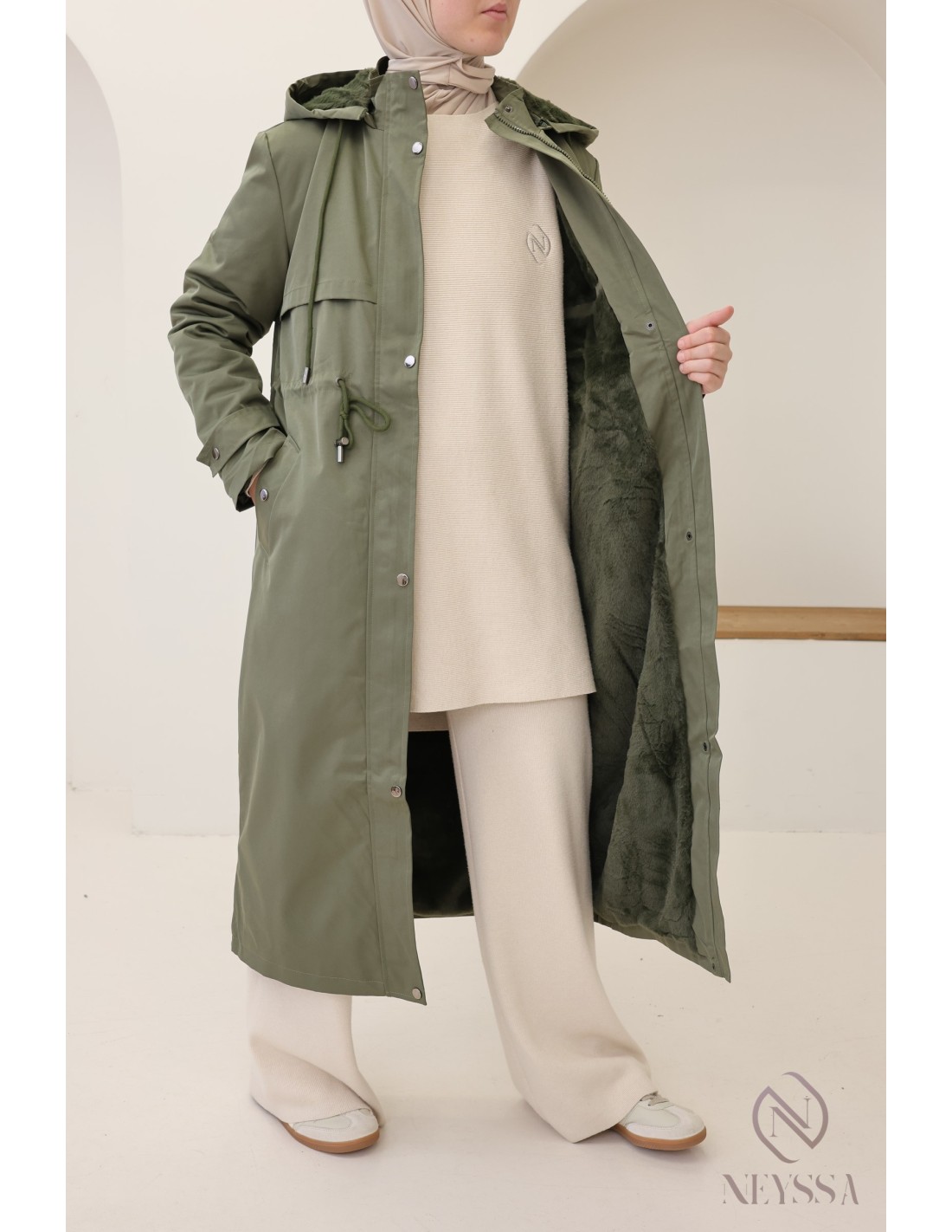 Combine comfort and elegance with this long jacket, designed for women looking for a modest and refined style.