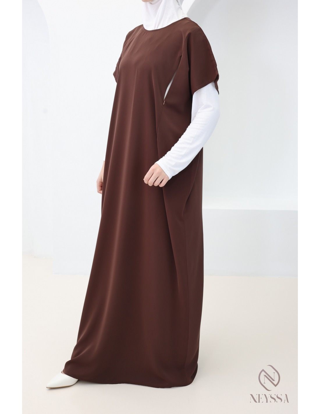 Long under-abaya with nursing zipper and short sleeves by Nidah femme