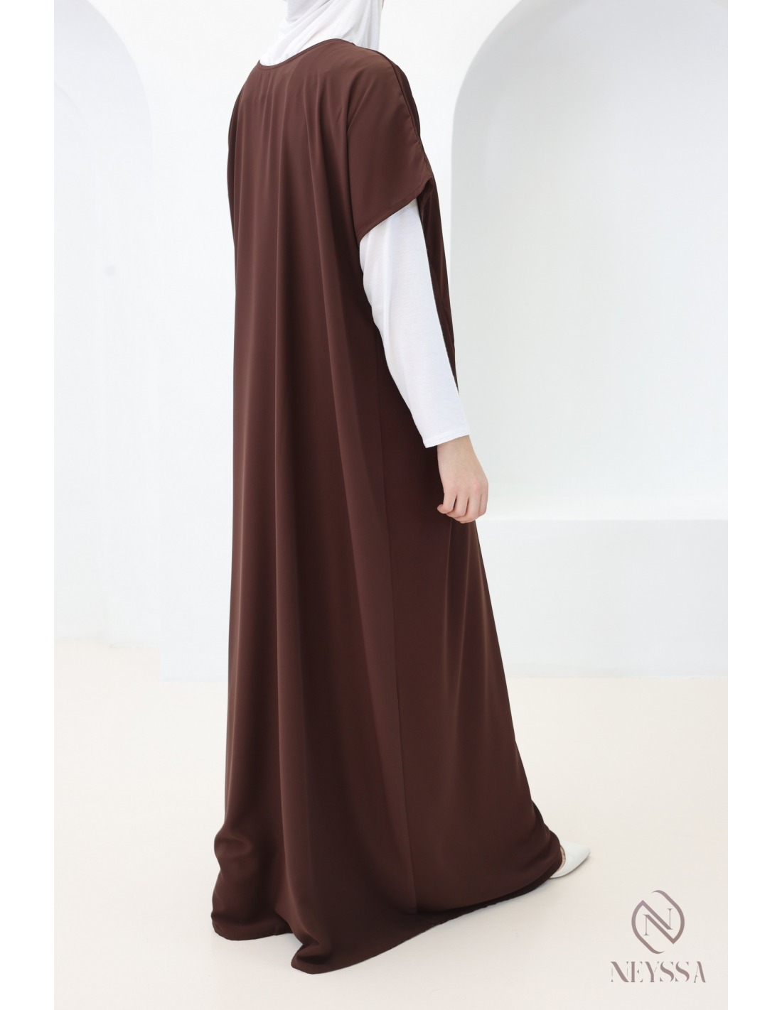 Neyssa offers you this essential sleeveless women's under abaya to wear with your Dubai kimonos, Caftan kimono or long open cape.