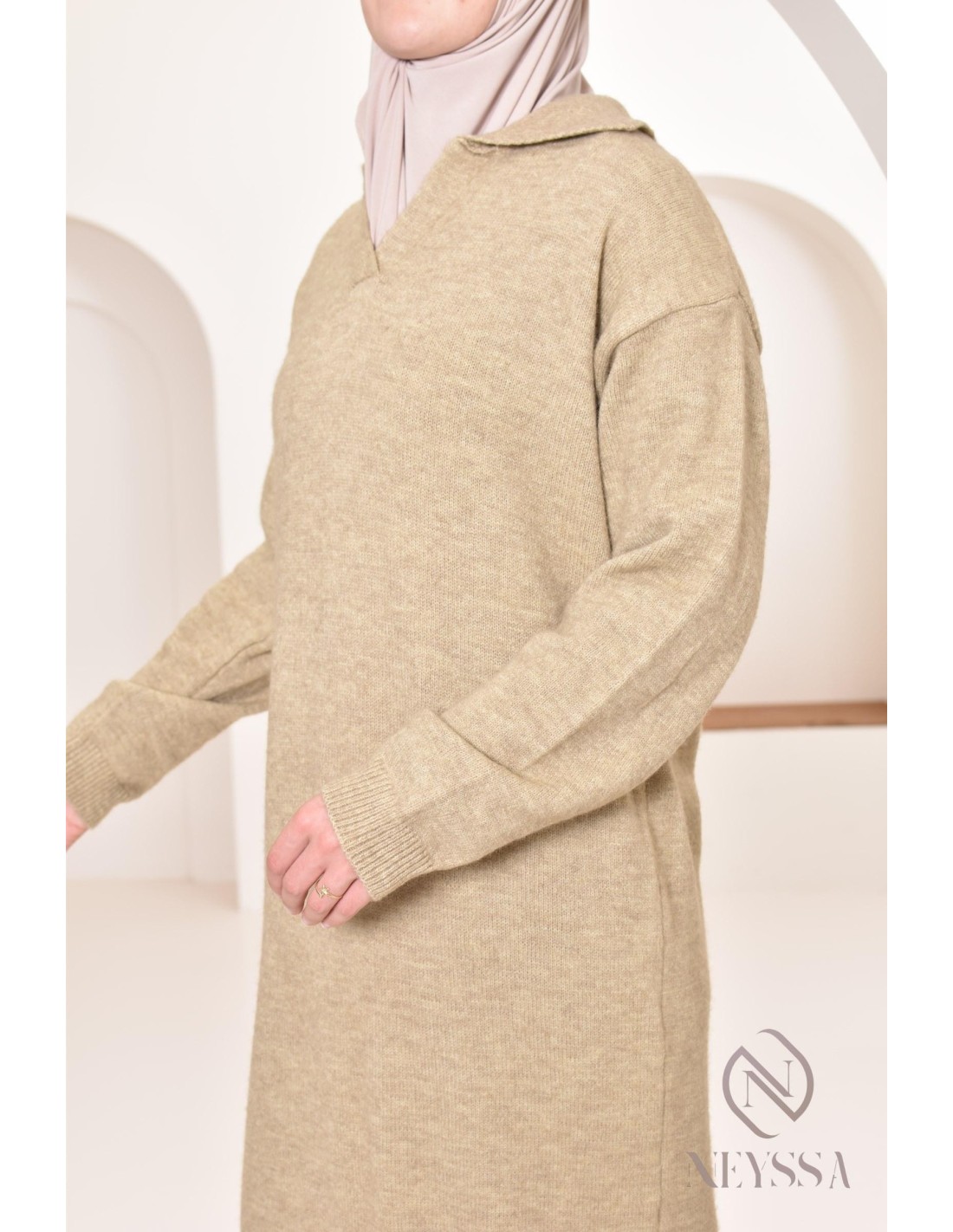 Discover this magnificent women's long sweater dress, crafted in a soft, warm knit. Simple and modern, it's perfect for staying elegant and comfortable all winter long. A must-have for women seeking warmth, style and refinement, while respecting the values of modesty.