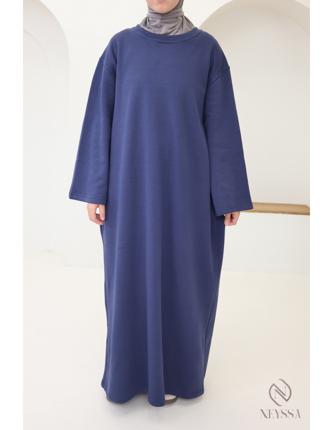 Here is a beautiful long fleece dress that is both modern and comfortable. It is the essential piece to wear on cool days. Designed to meet the needs of warmth, style, and modesty, this dress is ideal for modern veiled women.