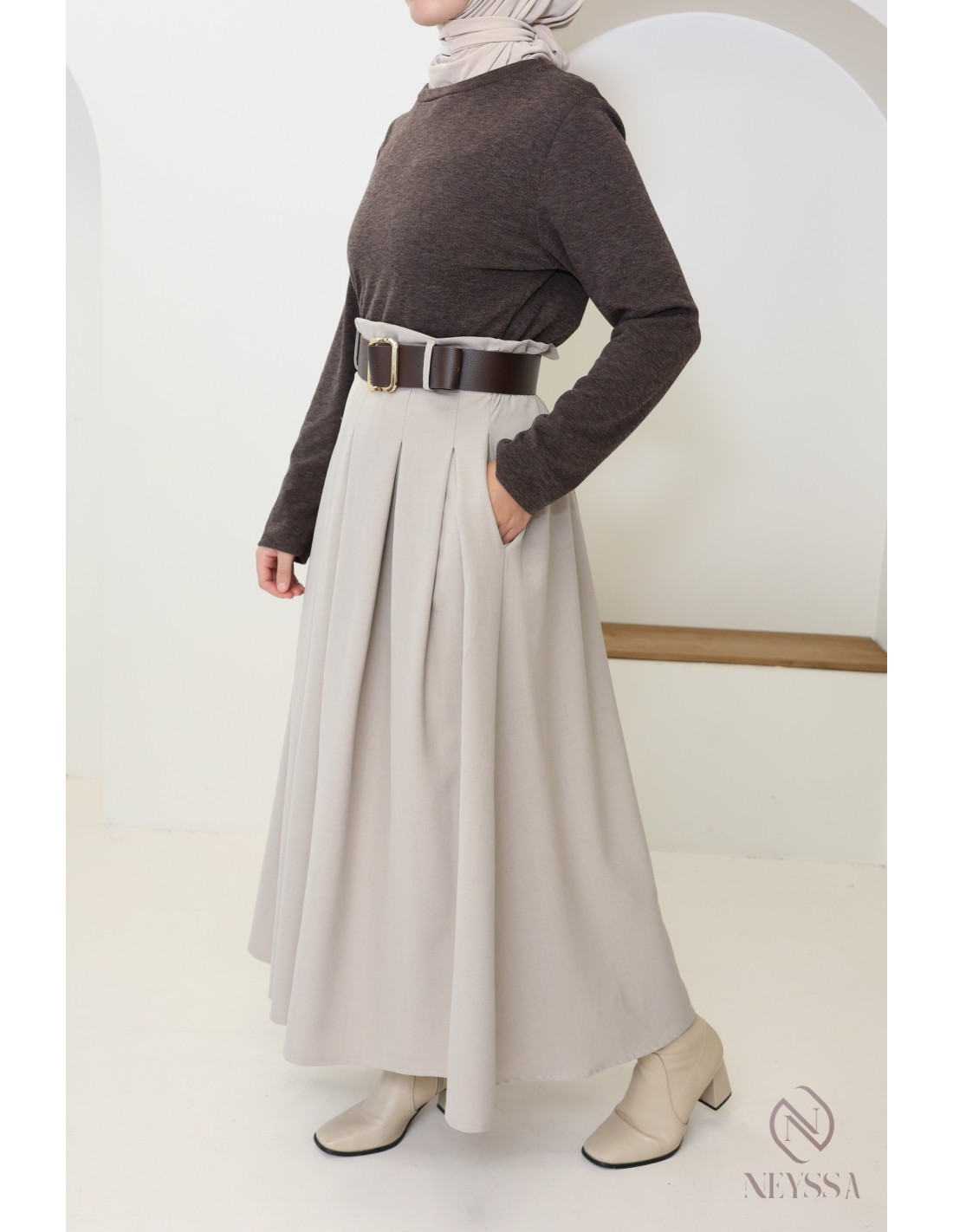 It is a complete dress, consisting of a long-sleeved top sewn to a flowing skirt. No need to think about how to match your top and skirt: just slip it on and you're ready to go.