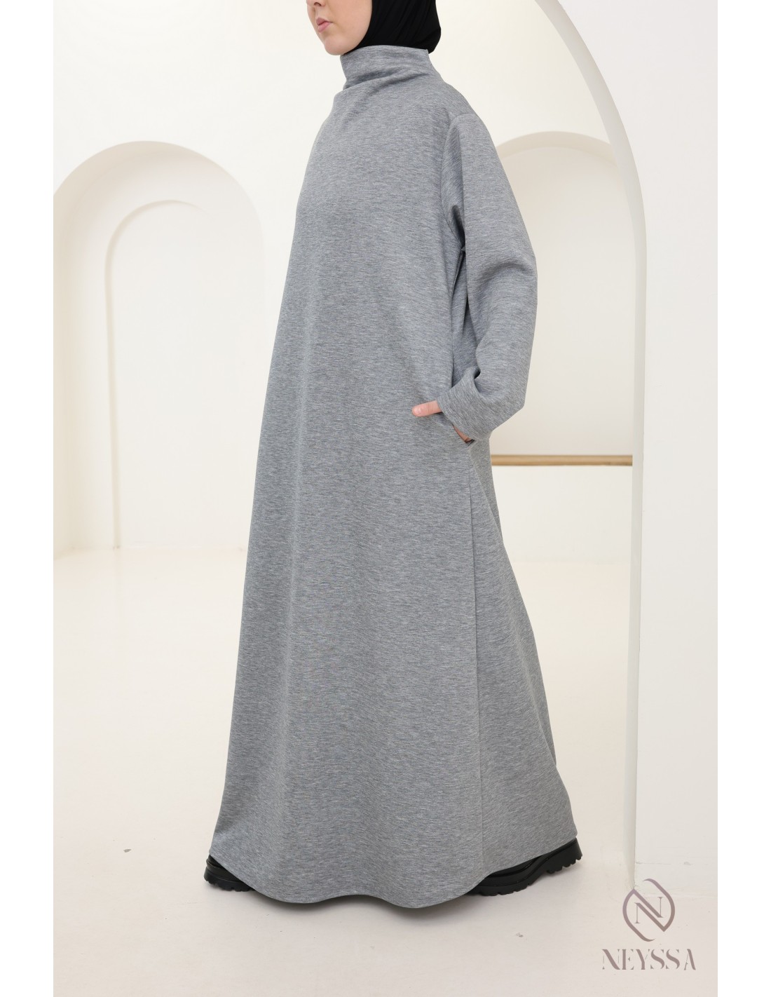Here is a beautiful long dress for the season, both modern and comfortable. It is the essential piece to wear on cool days. Designed to meet the needs of warmth, style, and modesty, this dress is ideal for modern veiled women.