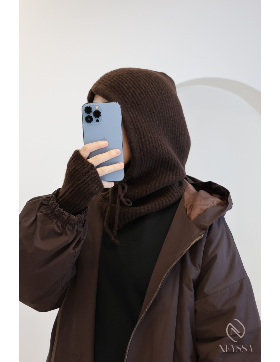 • Wrap-around hood: provides warmth and protection from the wind and cold.