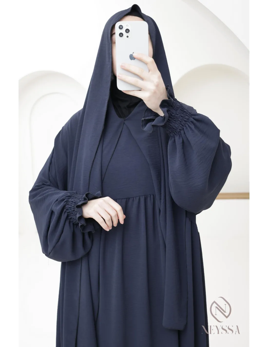 Full-cut prayer abaya with integrated hijab in jazz : Ramadan 2025