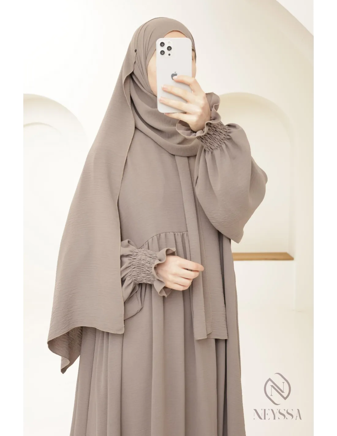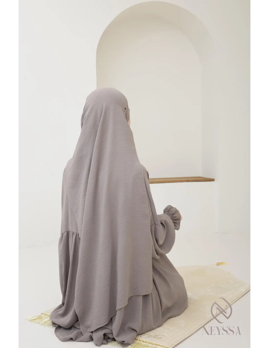 Full-cut prayer abaya with integrated hijab in jazz : Ramadan 2025