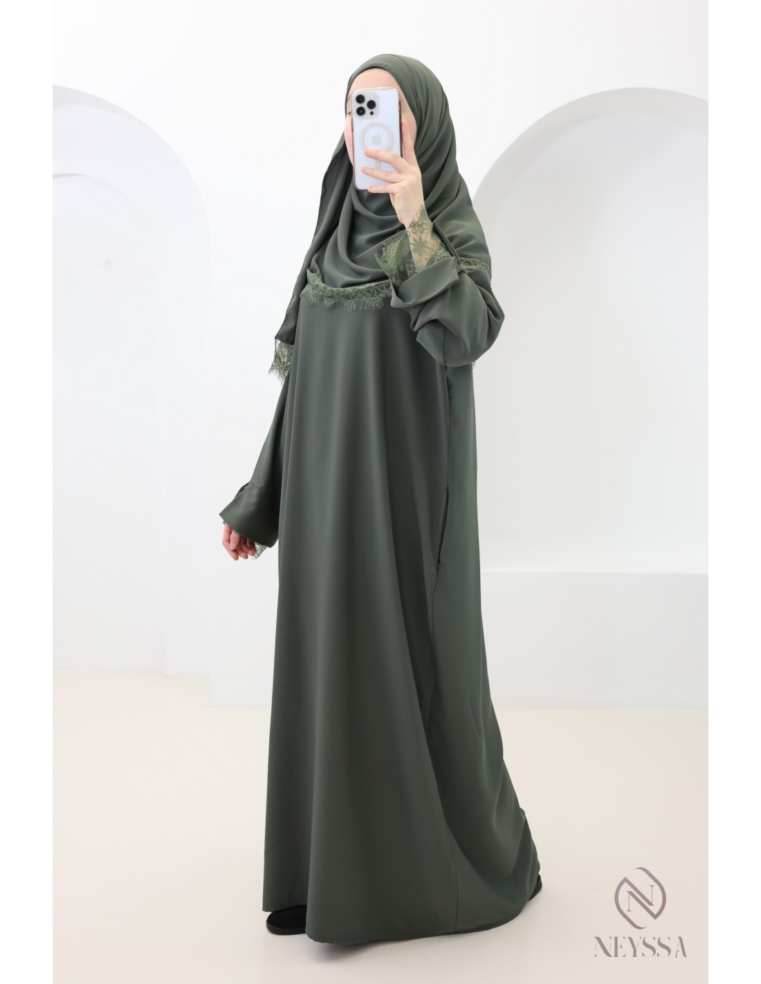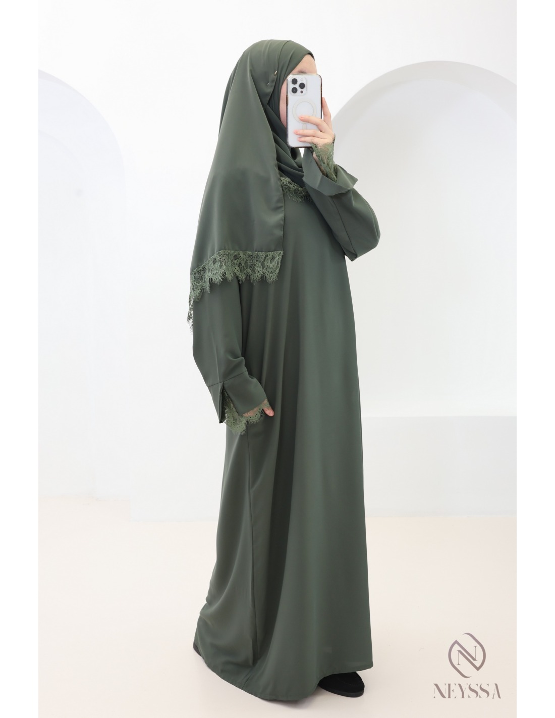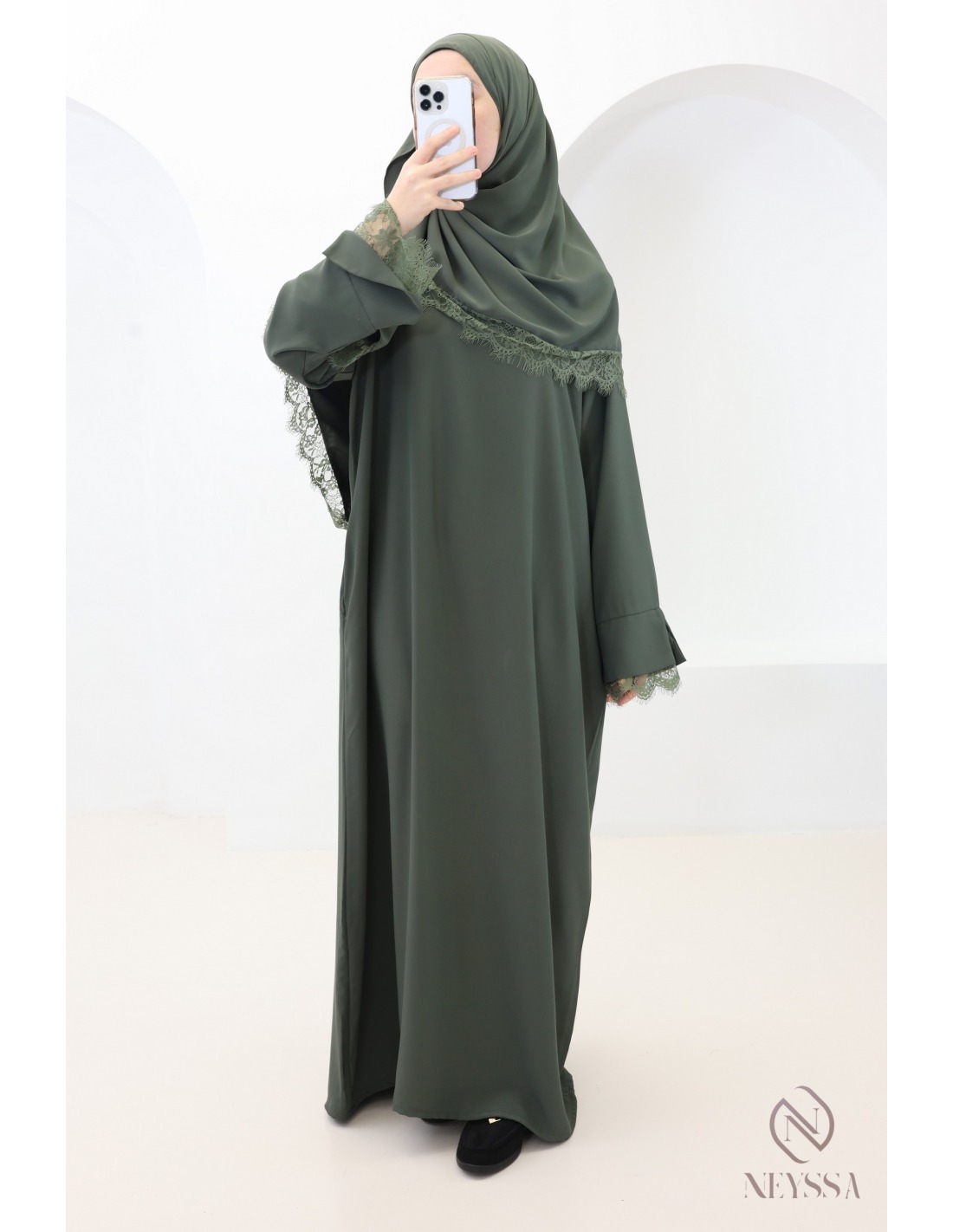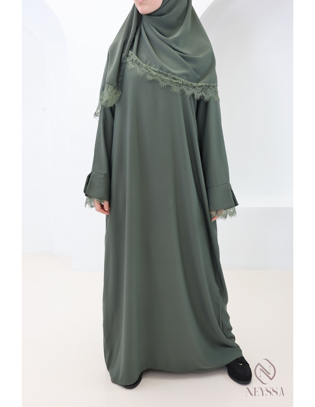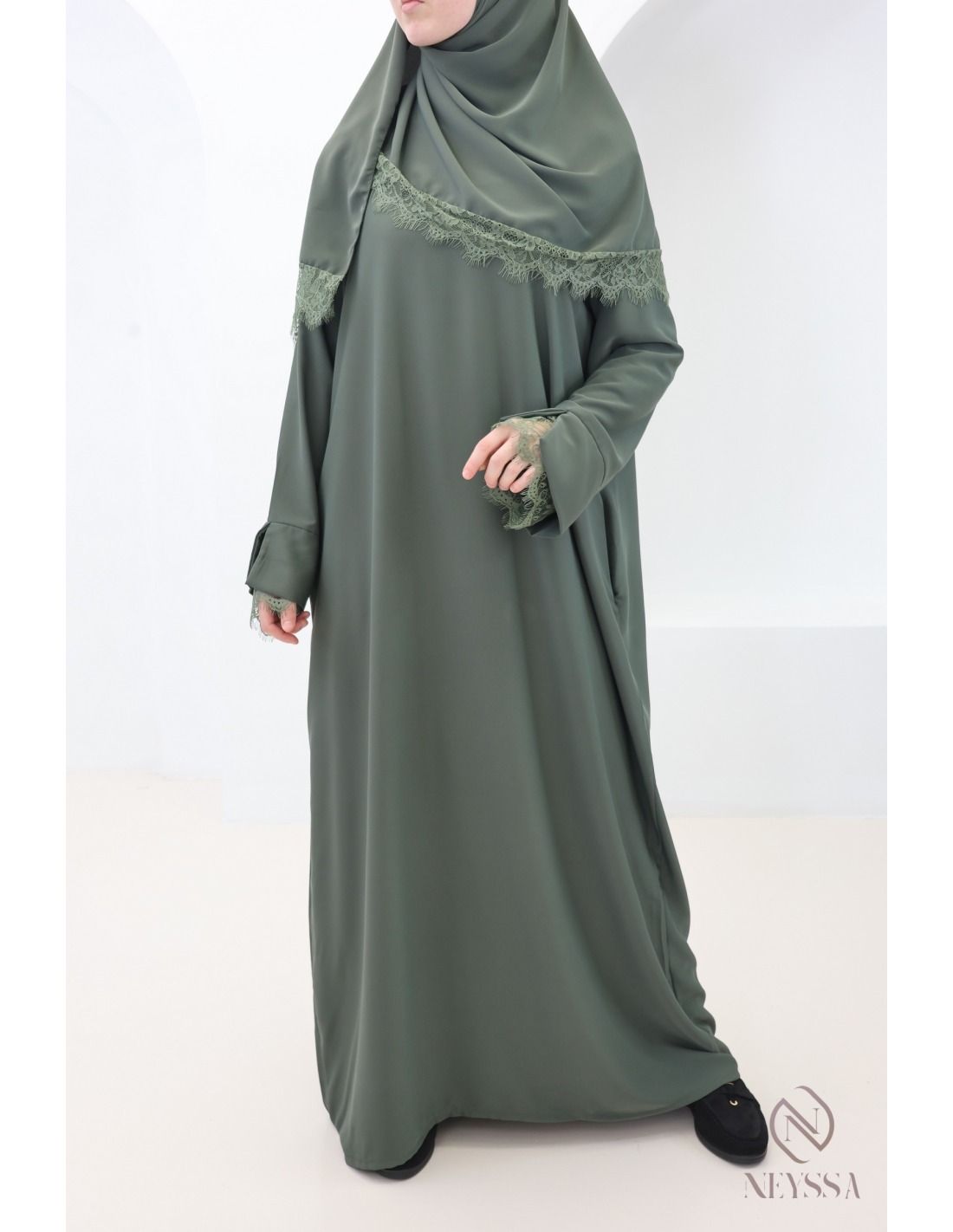 Why choose this trendy lace abaya + hijab set for veiled women?
