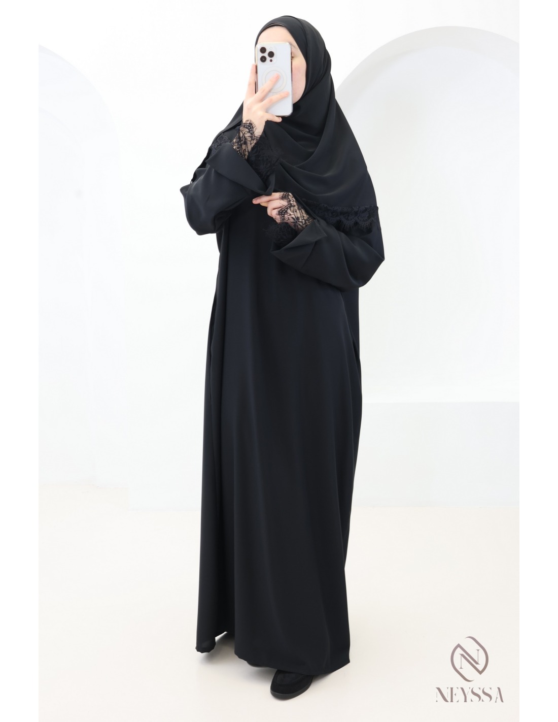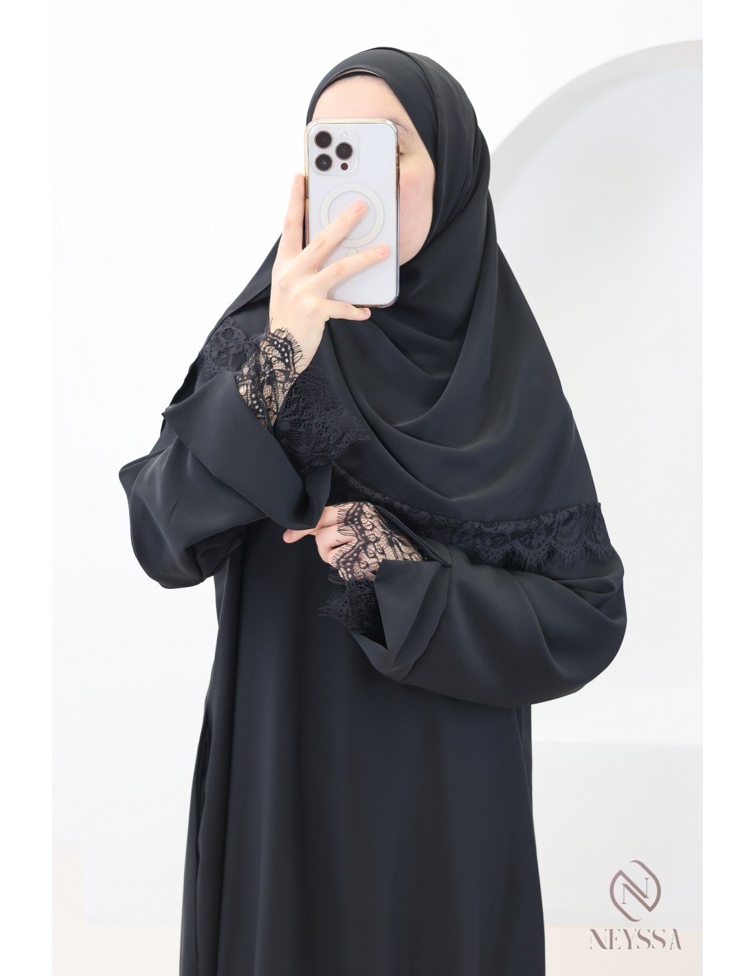Why choose this trendy lace abaya + hijab set for veiled women?