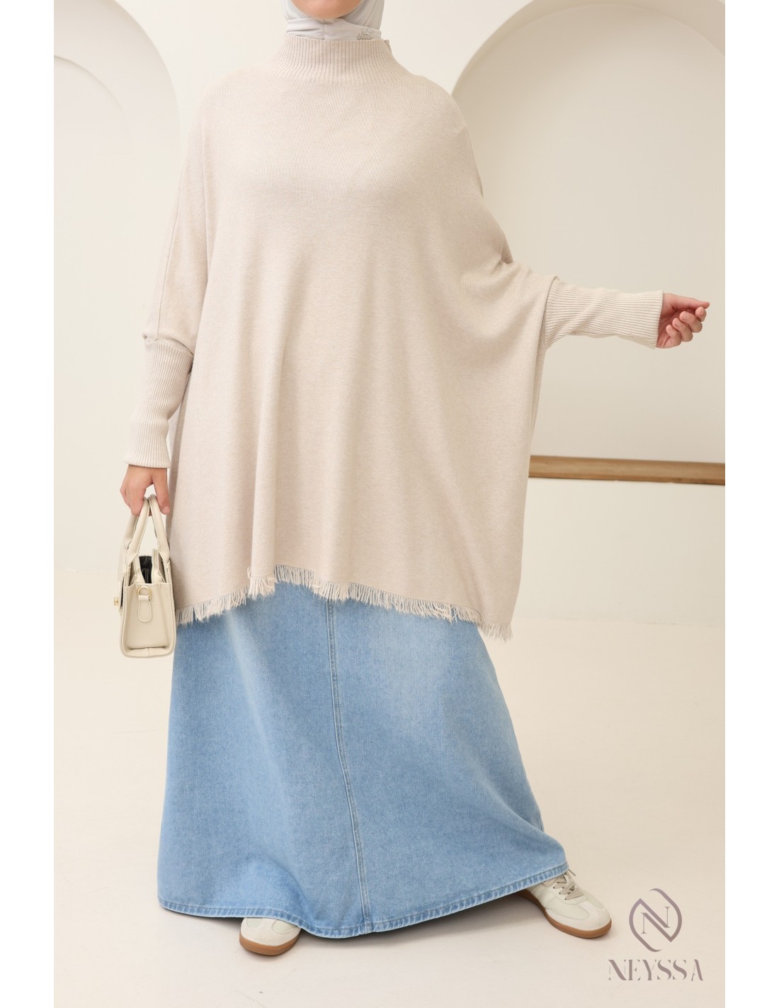 • Fringed details: The fringes at the bottom of the sweater add an original, bohemian touch, bringing movement and an elegant finish to the outfit.