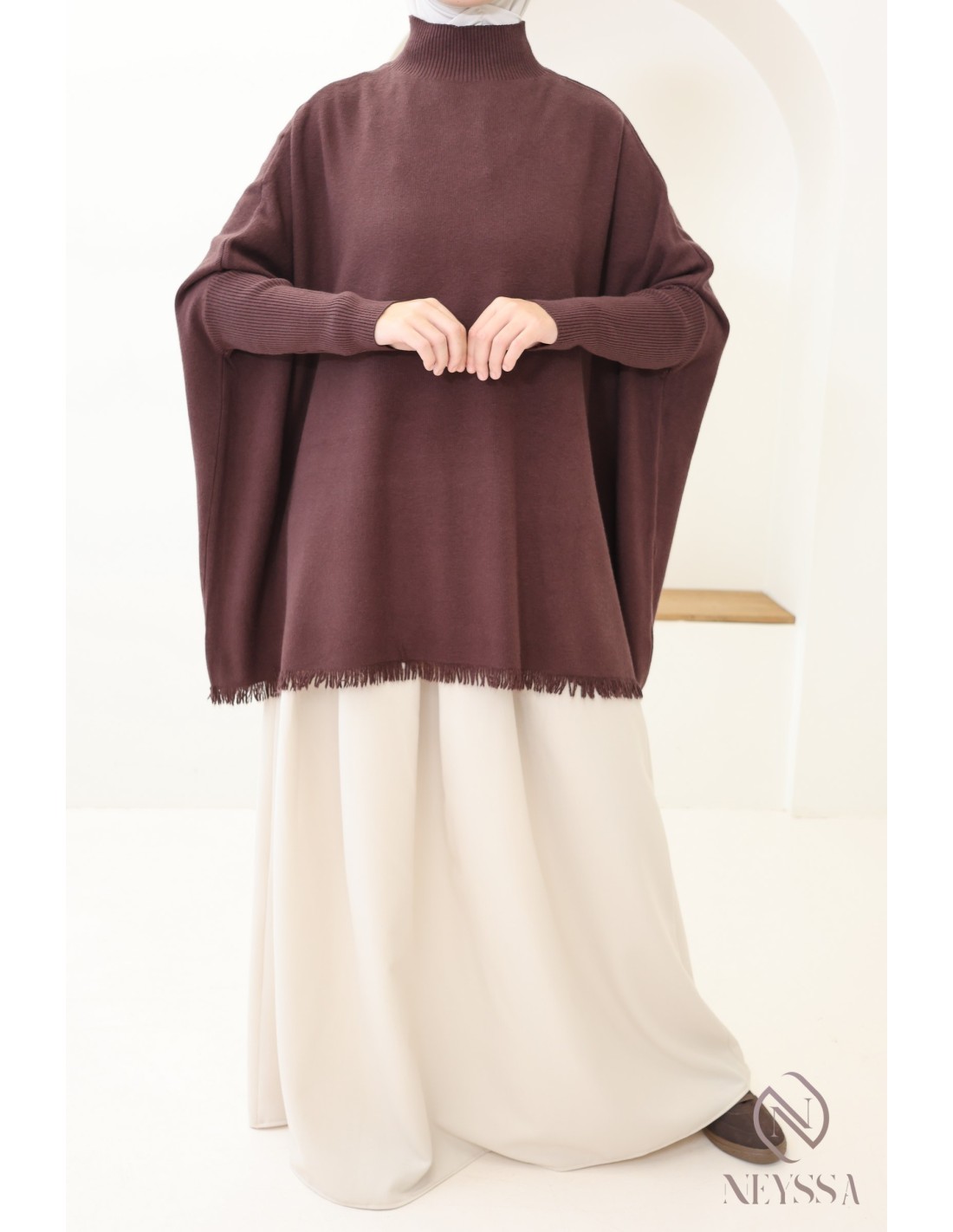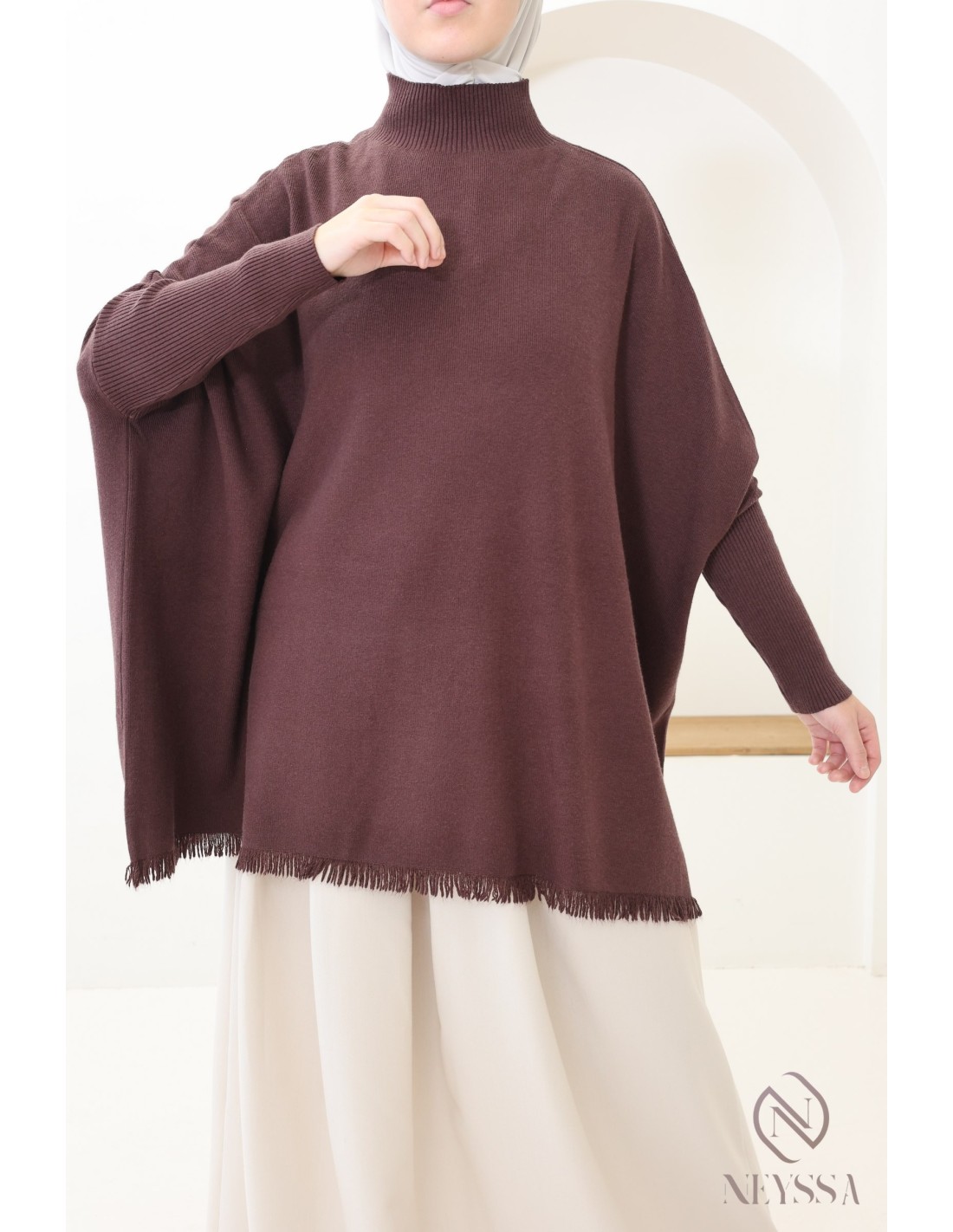 - Fringed details: The fringes at the bottom of the sweater add an original, bohemian touch, bringing movement and an elegant finish to the outfit.