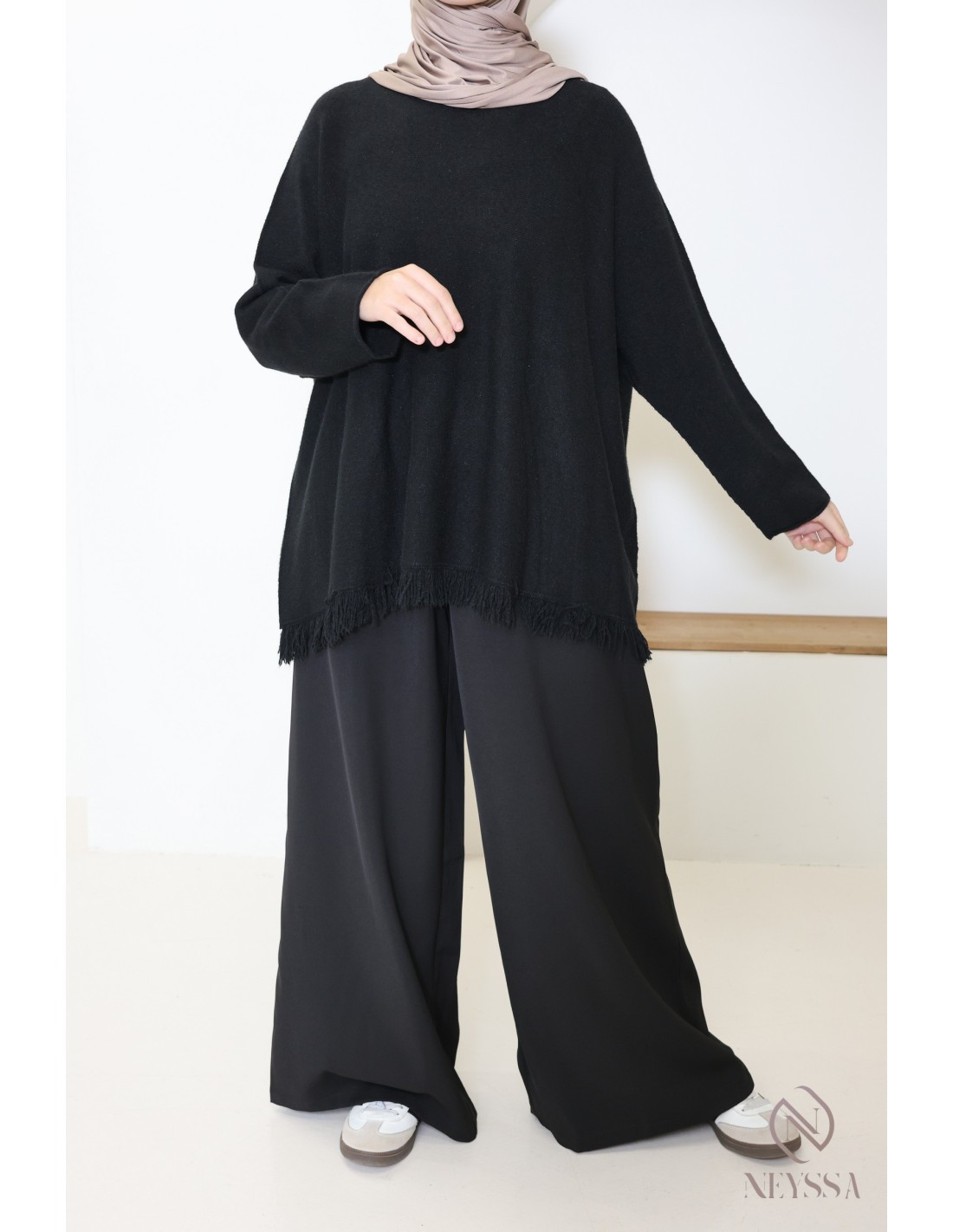 Trendy Mid-Length Fringed Knit Sweater for Hijabi Women