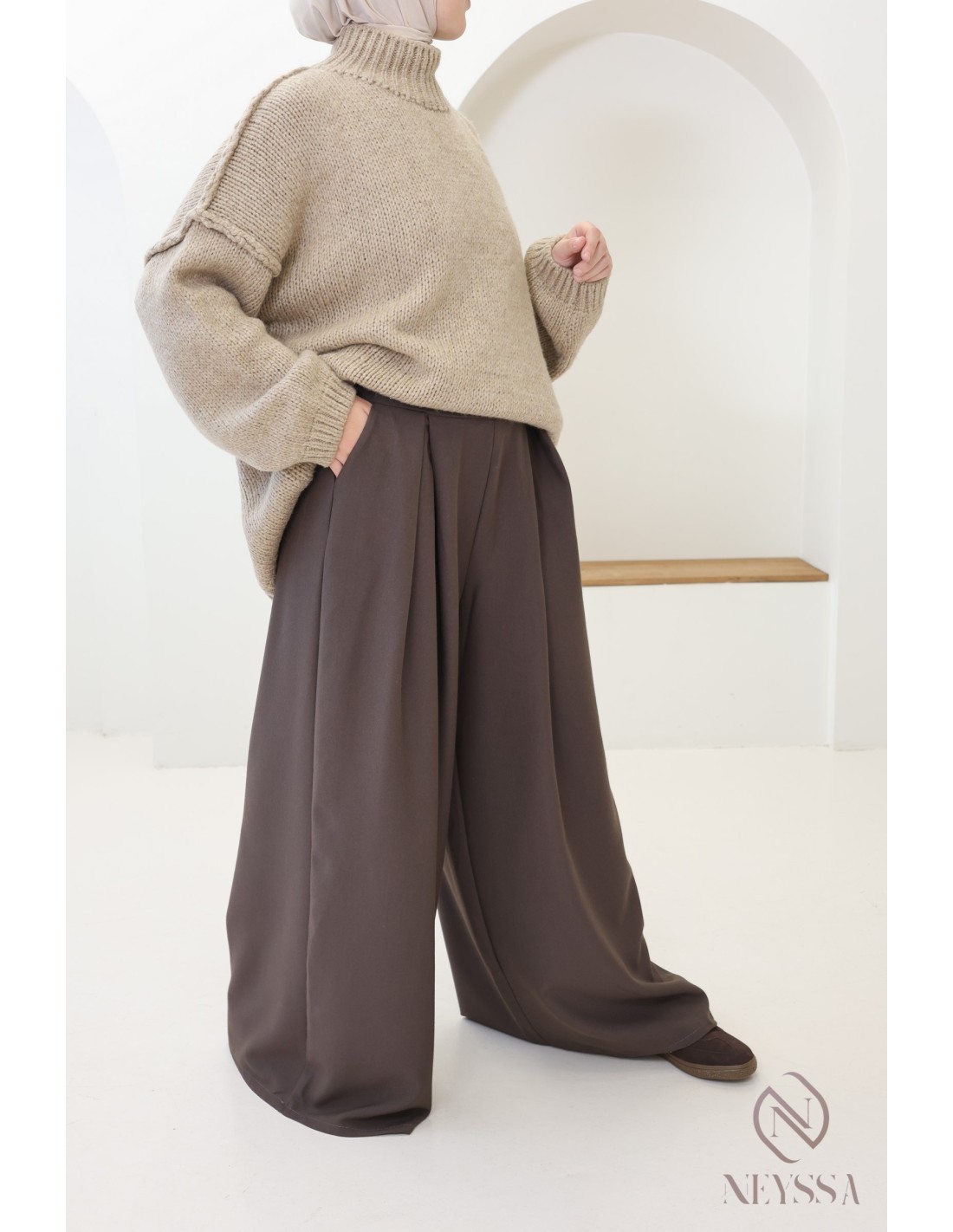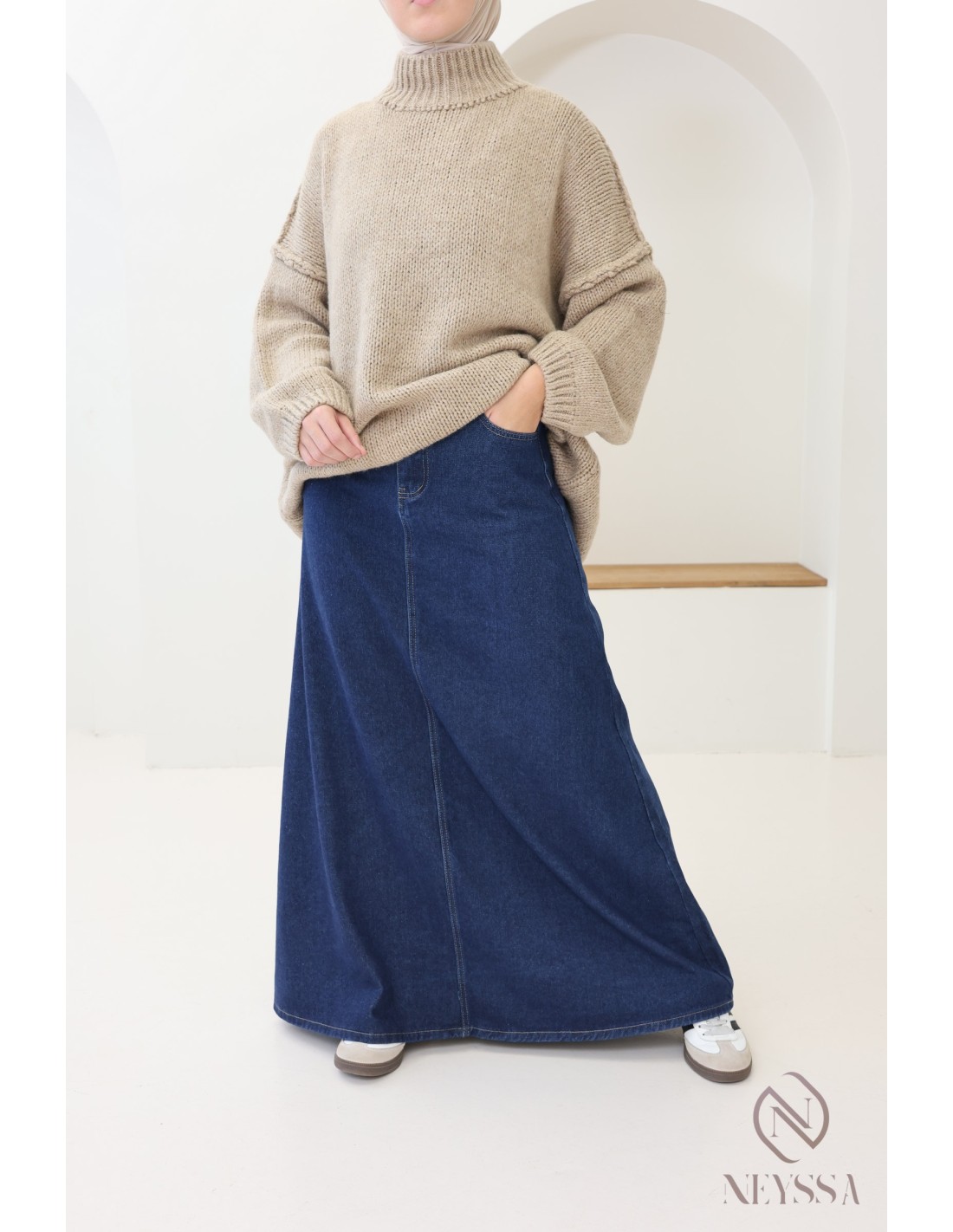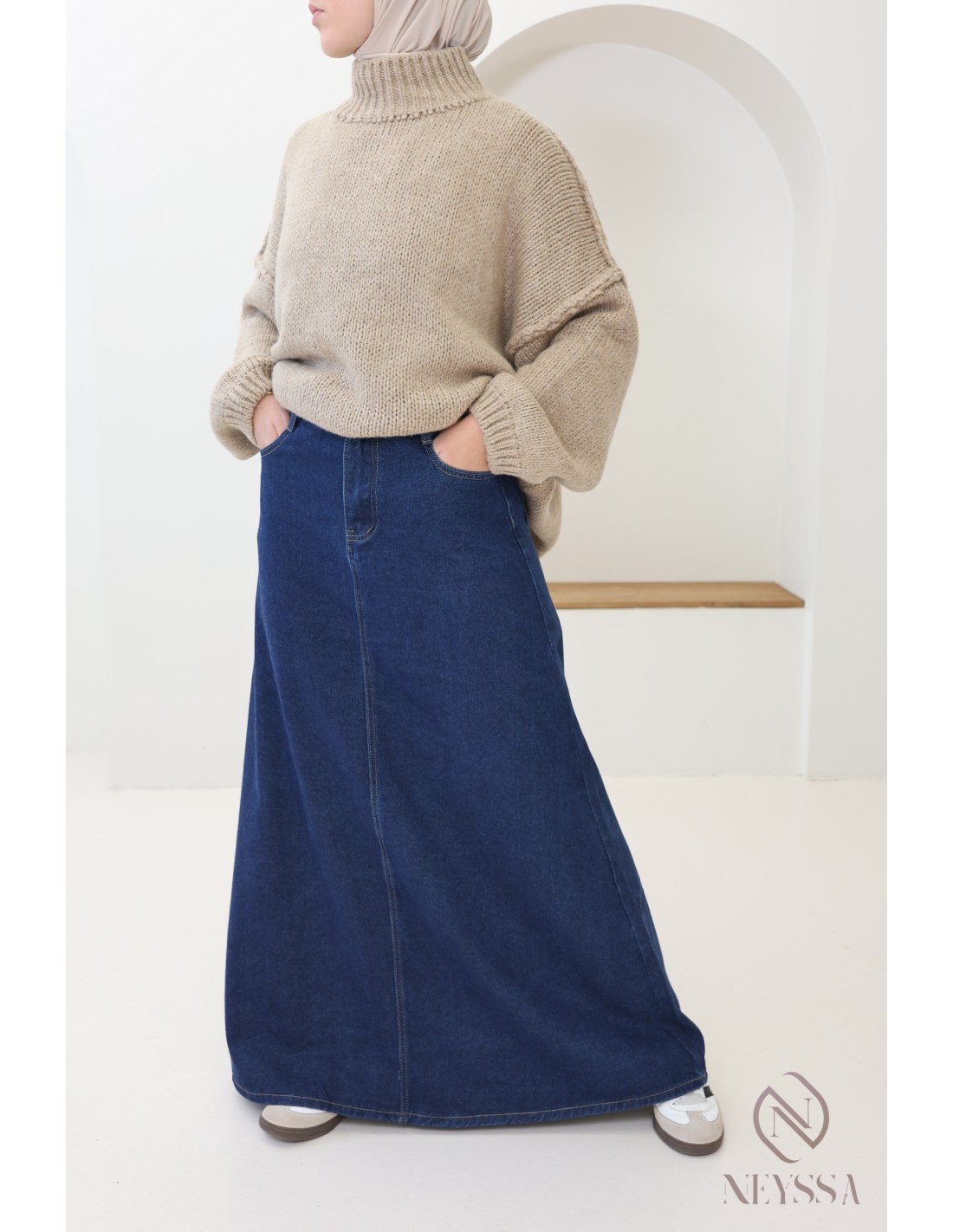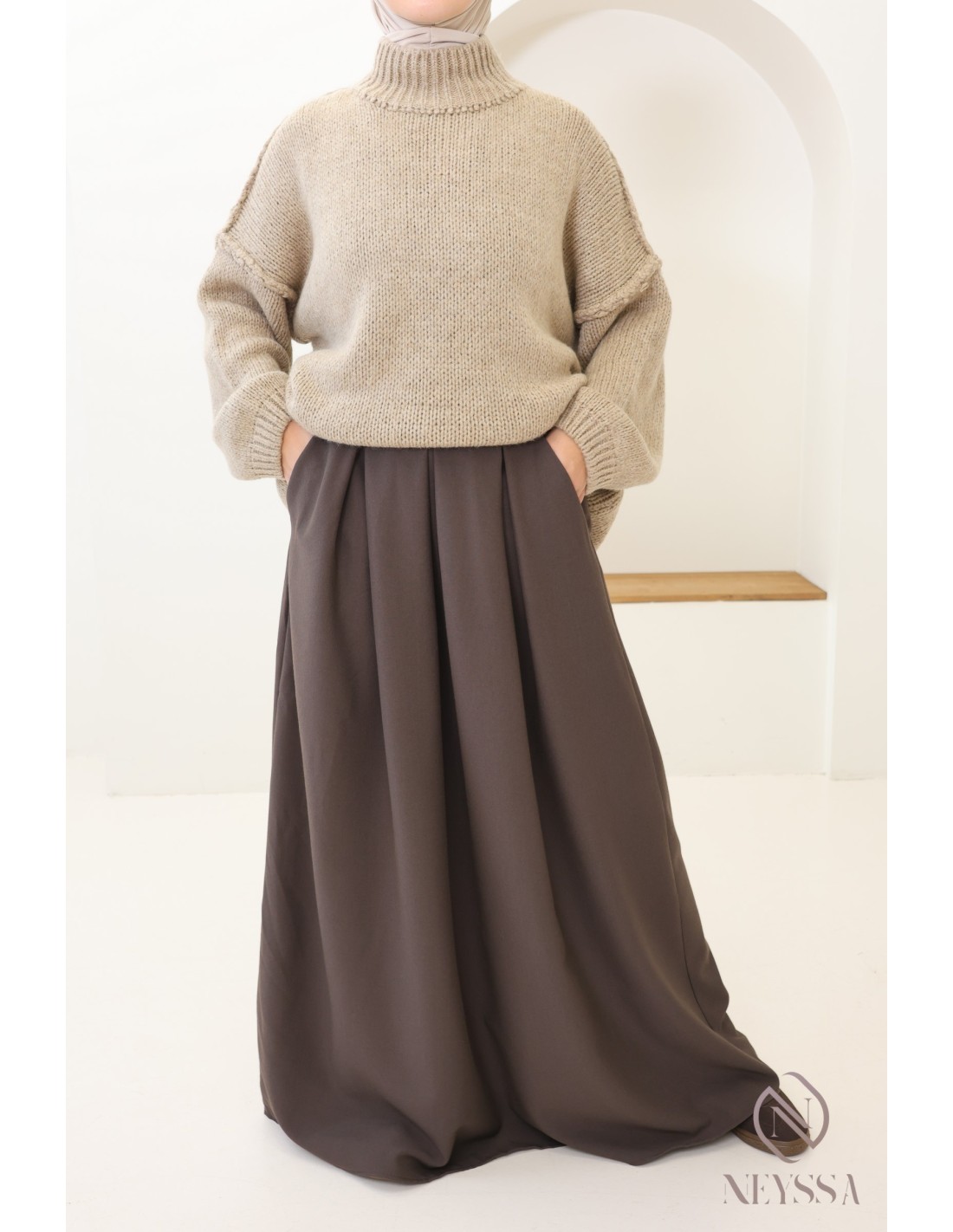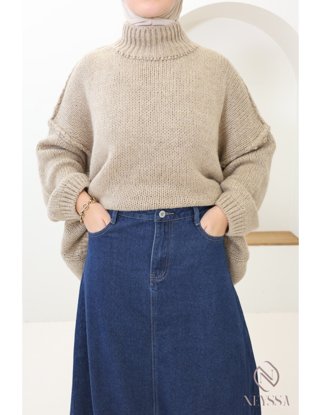 • Elegant style : For a more refined look, pair the sweater with a flowing pleated skirt in neutral tones. Opt for heeled ankle boots and a hijab for a sophisticated touch. A structured bag completes the look.