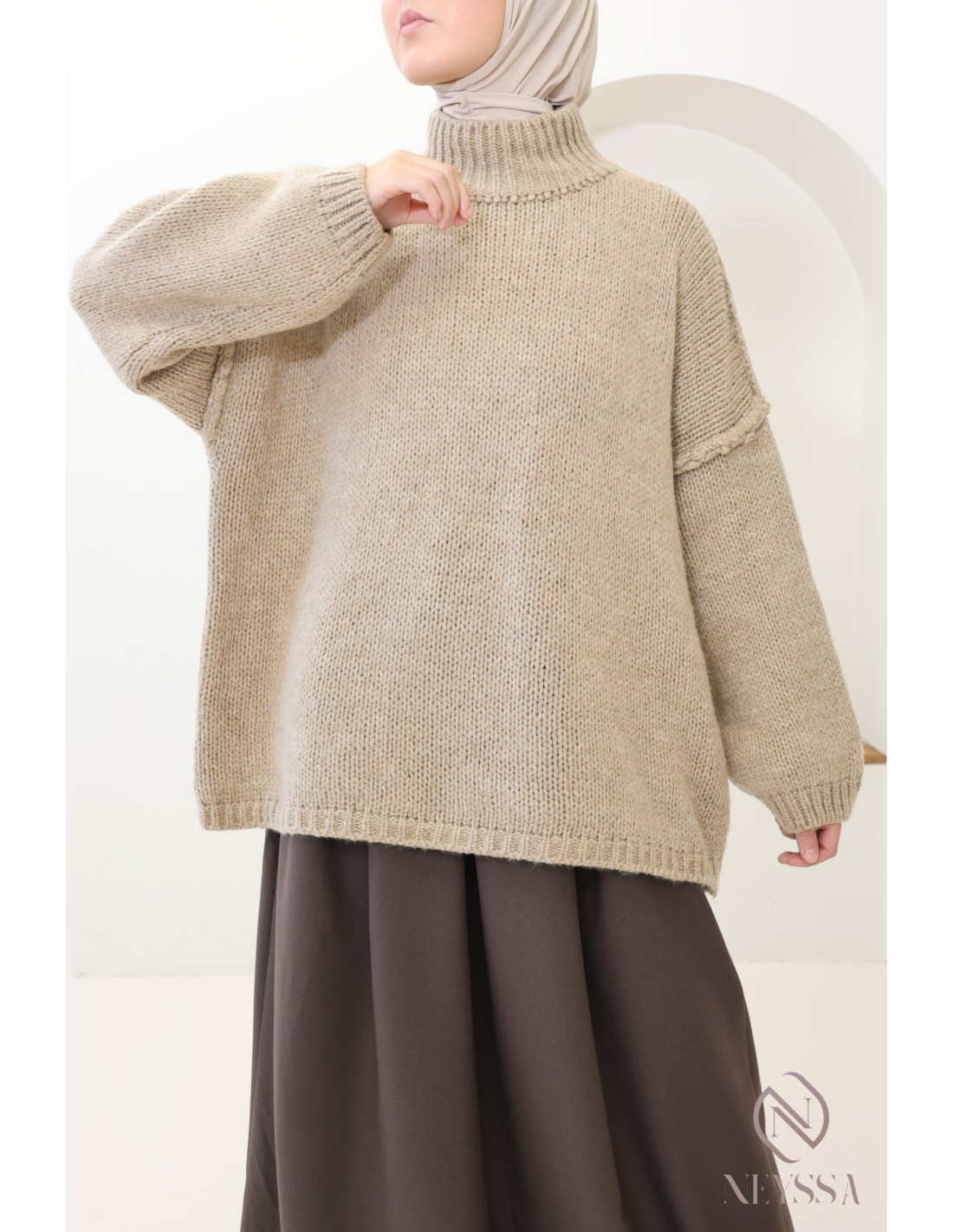 Modest women's oversized knitted sweater, ideal for winter outfits