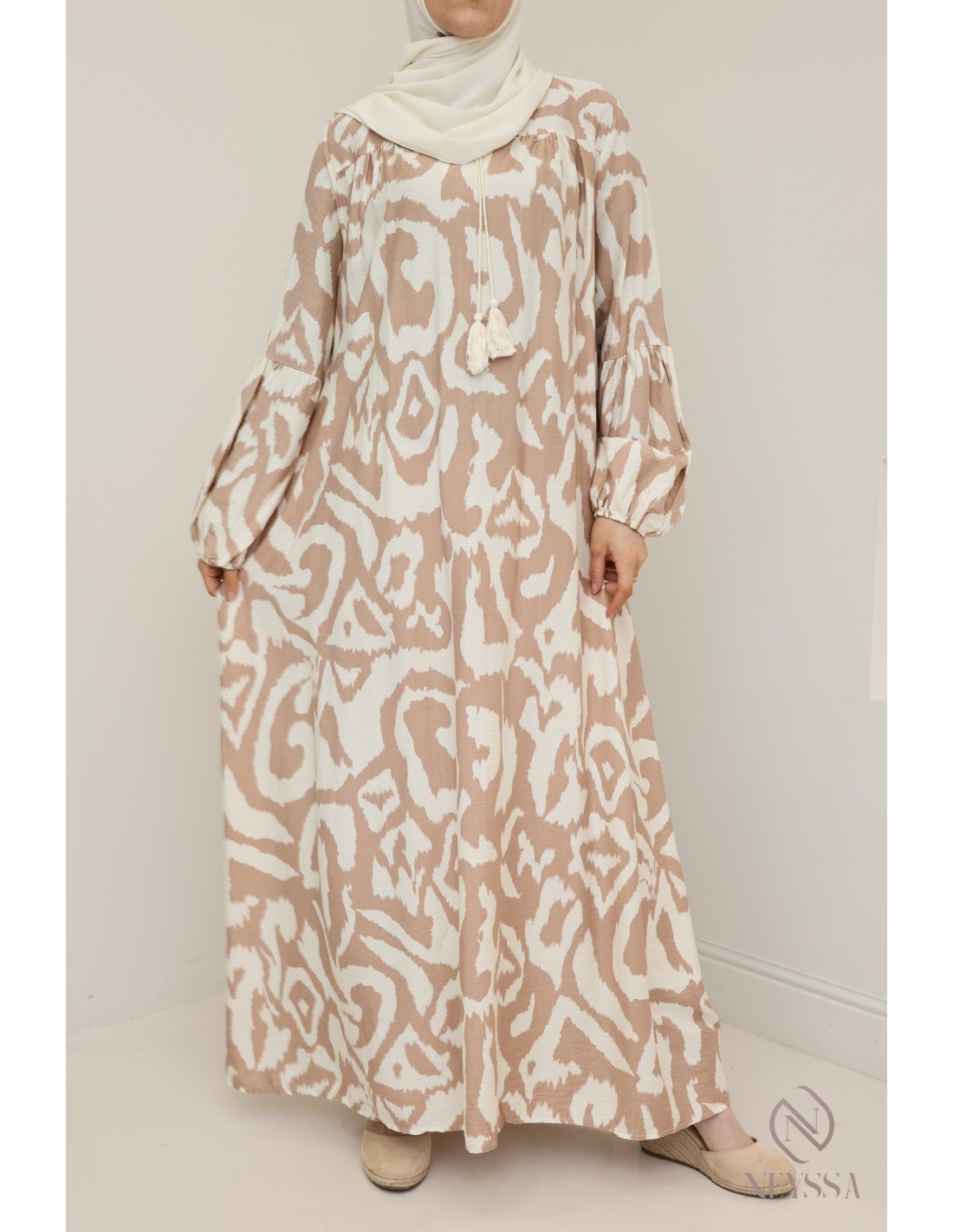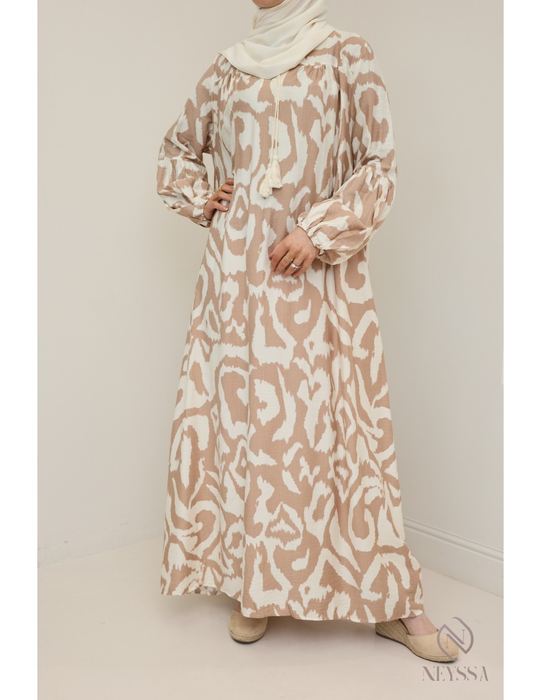 Abaya robe imprimés camel : hijabi must have