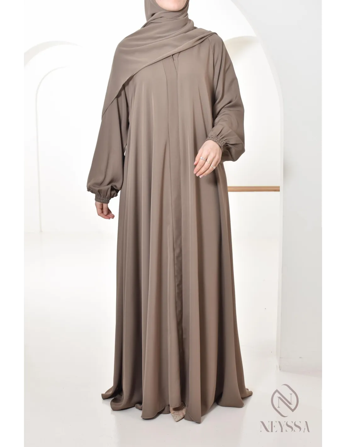 Abaya Dubaï simple taupe pour femme modeste : idéale occasion spéciale