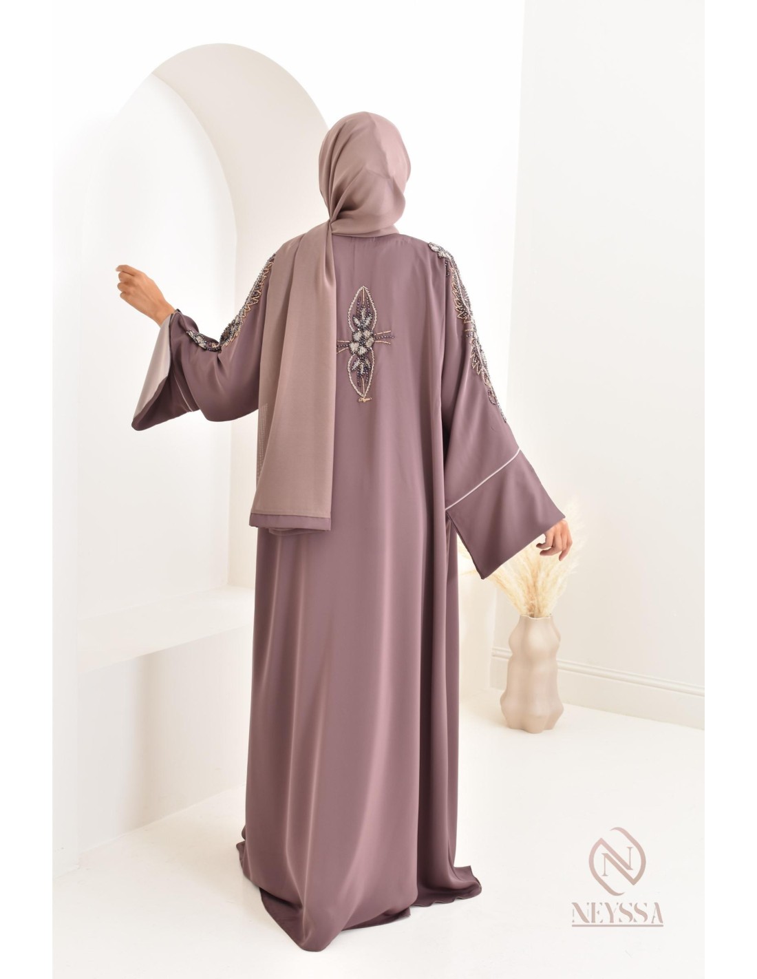Vous êtes à la recherche d'une abaya chic qui sort de l'ordinaire ? Neyssa a confectionné spécialement pour vous une robe exceptionnelle avec des perles cousues à la main.