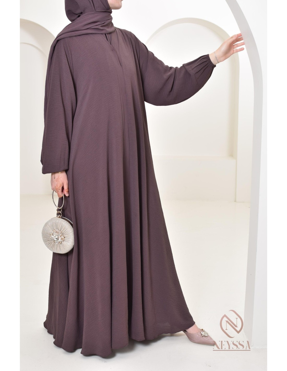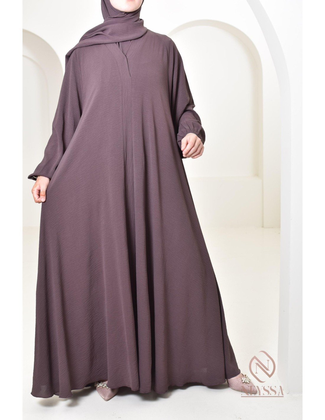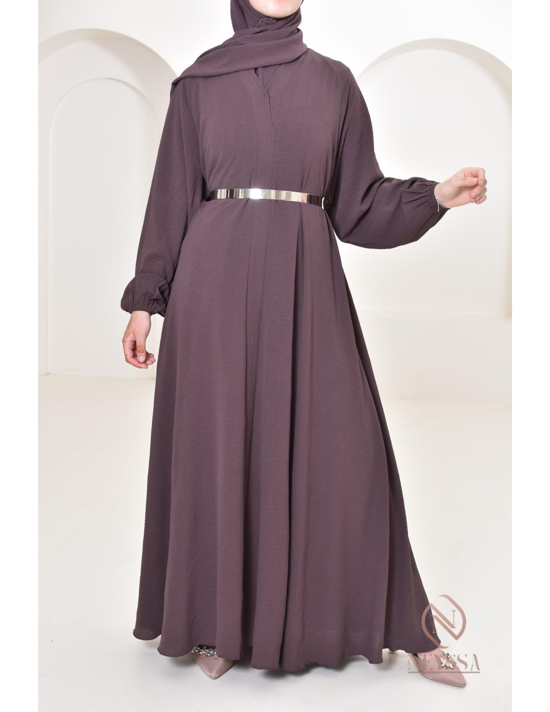 Il s'agit d'une abaya simple qui va vous sublimer le jour de l'Aïd mais pas que ! Vous pourrez la porter pour tous vos autres événements.