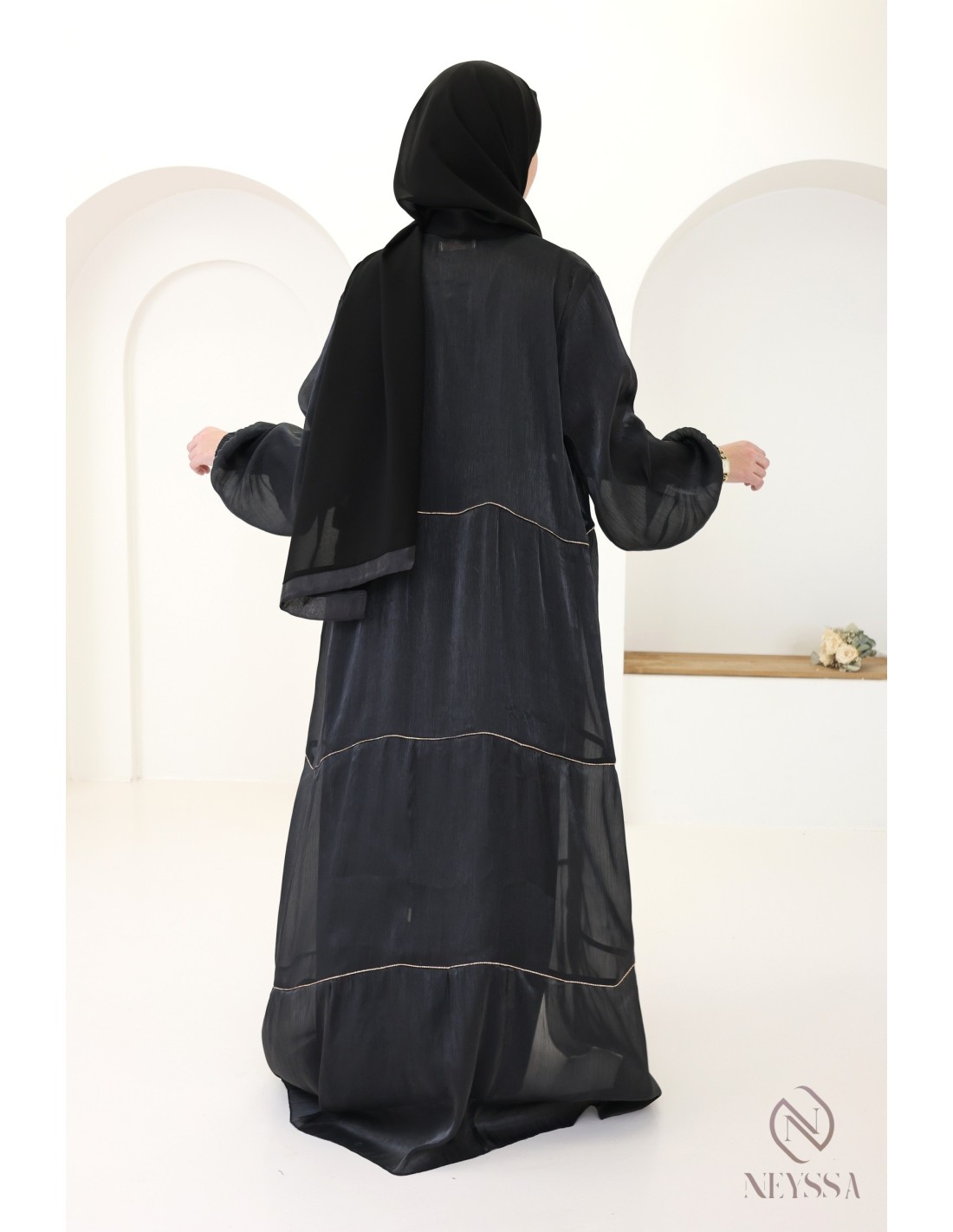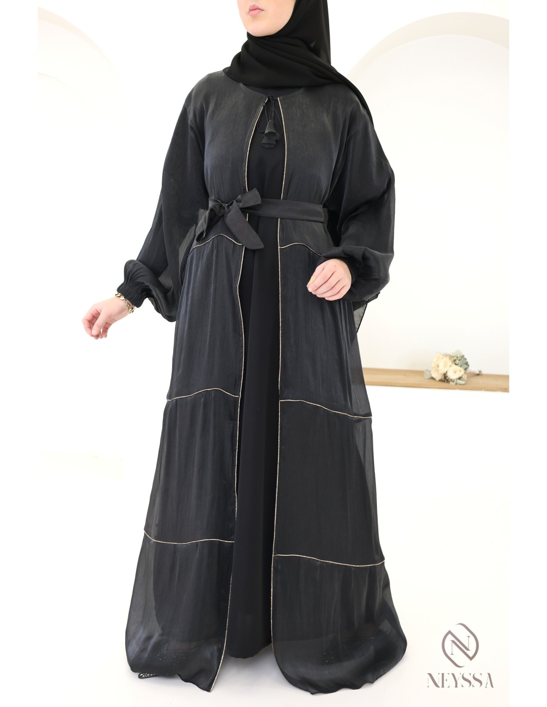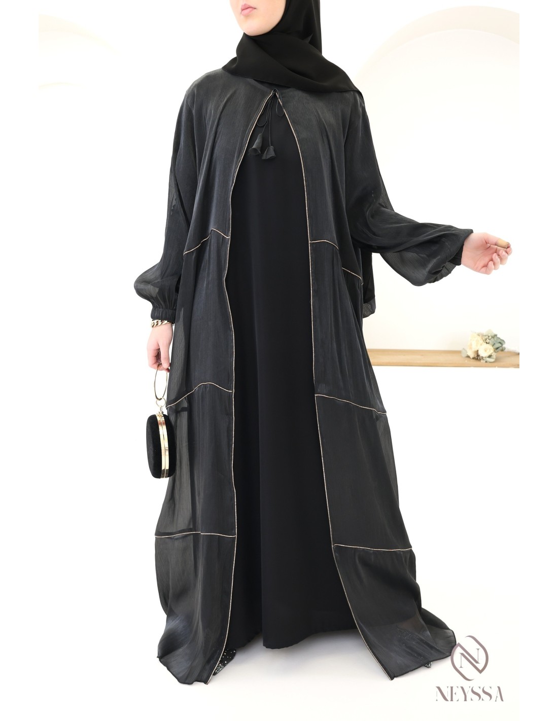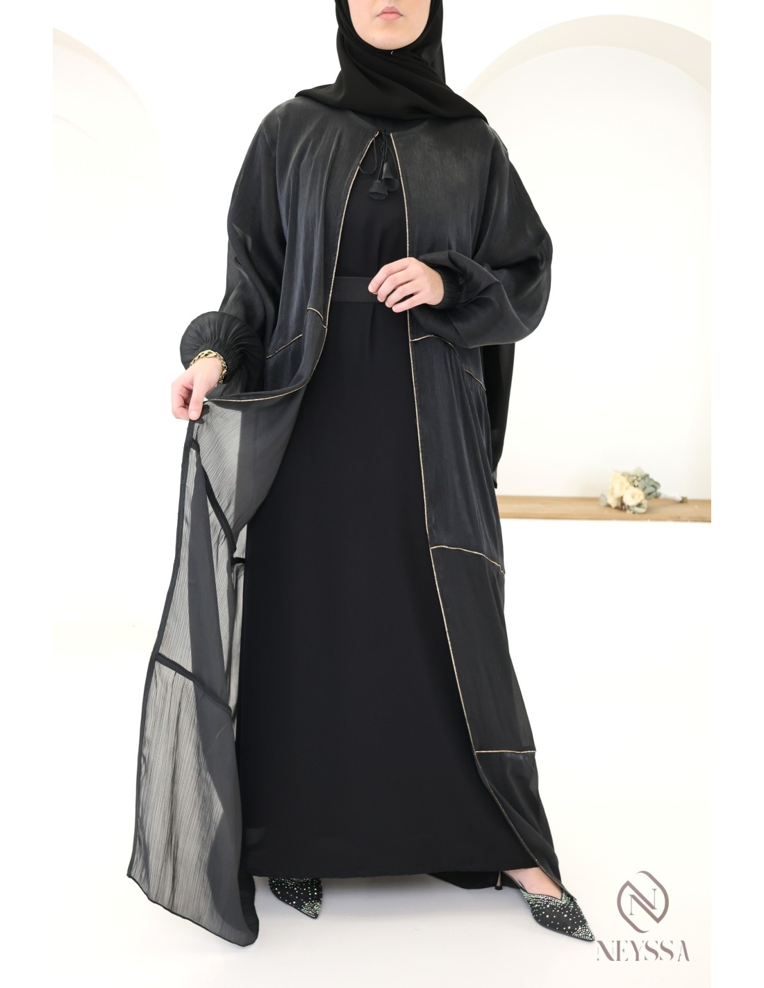 Abaya Kimono Dubaï en organza Noir femme hijabi